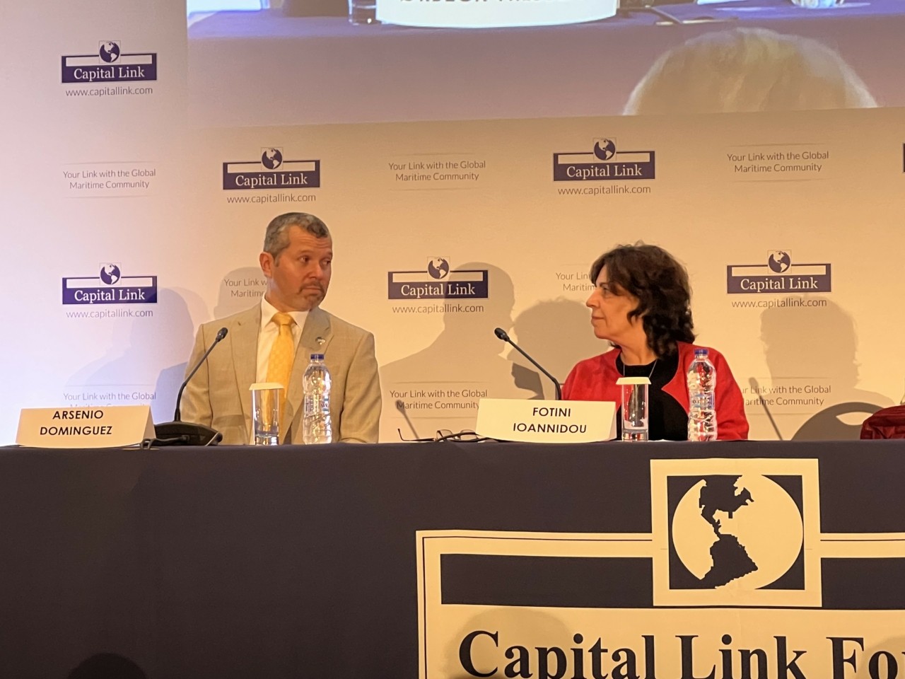 Τα ξίφη τους διασταύρωσαν ο γ.γ. του Διεθνούς Ναυτιλιακού Οργανισμού Αρσένιος Ροντρίγκεζ και η Φωτεινή Ιωαννίδου, επικεφαλής του τμήματος της Κομισιόν για την Ασφάλεια στη Θάλασσα στη διάρκεια του 14ου Ετήσιου Φόρουμ για την ελληνική Ναυτιλία της Capital Link.