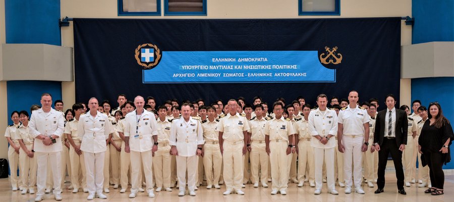 Την Ιαπωνική αντιπροσωπεία υποδέχθηκε εκ μέρους του Αρχηγού Λιμενικού Σώματος – Ελληνικής Ακτοφυλακής, Αντιναυάρχου Λ.Σ. Γεωργίου Αλεξανδράκη, ο Διευθυντής του Κλάδου Ασφάλειας και Αστυνόμευσης, Υποναύαρχος Λ.Σ. Τρύφων Κοντιζάς.