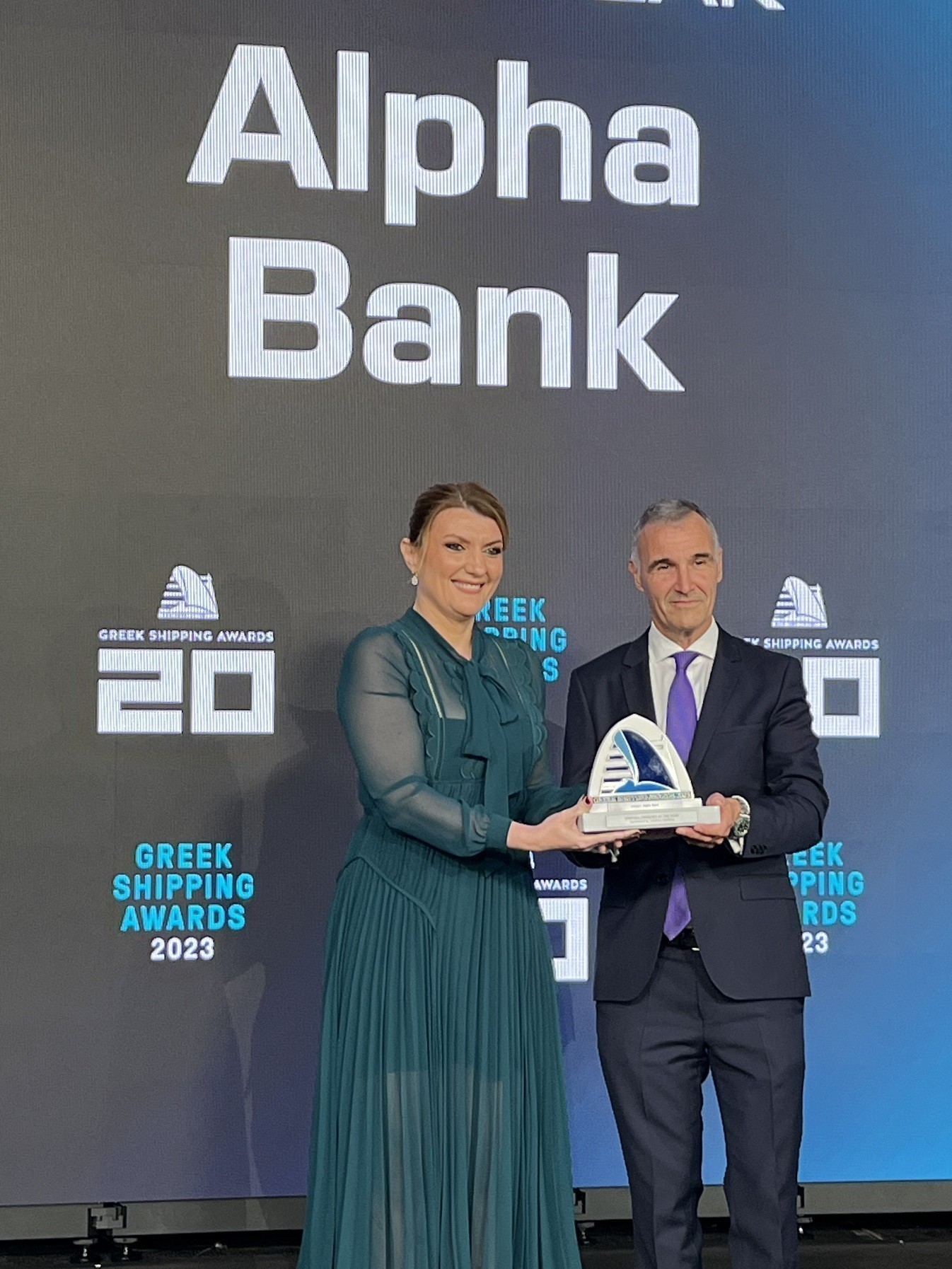 · Τιμήθηκε η Alpha Bank για επί 25 χρόνια ουσιαστική στήριξη της ελληνόκτητης ναυτιλίας. Είναι από τις τράπεζες που έχουν τα μεγαλύτερα χαρτοφυλάκια. Είναι η πρώτη ελληνική με 6,81% (3,535 δισ.) και δεύτερη στο σύνολο.