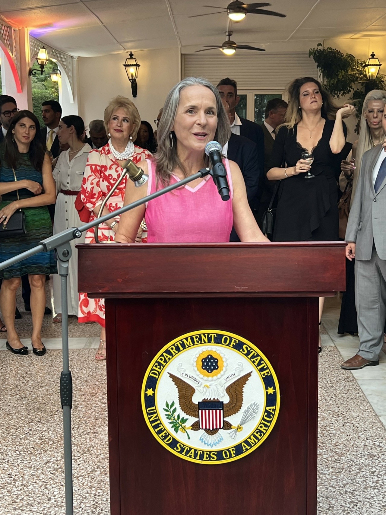Για τις στενές και διαχρονικές σχέσεις μεταξύ ΗΠΑ και Ελλάδας μίλησε η επιτετραμμένη στην πρεσβεία των ΗΠΑ στην Αθήνα, Μαρία Όλσον στη διάρκεια της εκδήλωσης στο πλαίσιο των Ποσειδωνίων που πραγματοποιήθηκε στην κατοικία του Αμερικανού πρέσβη Τζορτζ Τσούνη. Ο πρέσβης απουσίαζε γιατί βρίσκεται στην Ουάσιγκτον.