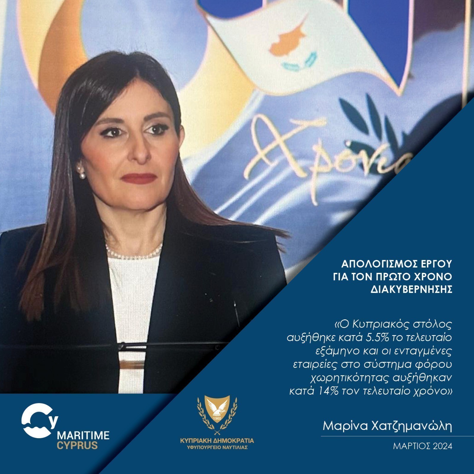 Το έργο και τις δράσεις του Υφυπουργείου Ναυτιλίας κατά τον πρώτο χρόνο διακυβέρνησης Νίκου Χριστοδουλίδη, παρουσίασε σε συνέντευξη τύπου η Υφυπουργός Ναυτιλίας της Κύπρου Μαρίνα Χατζημανώλη.
