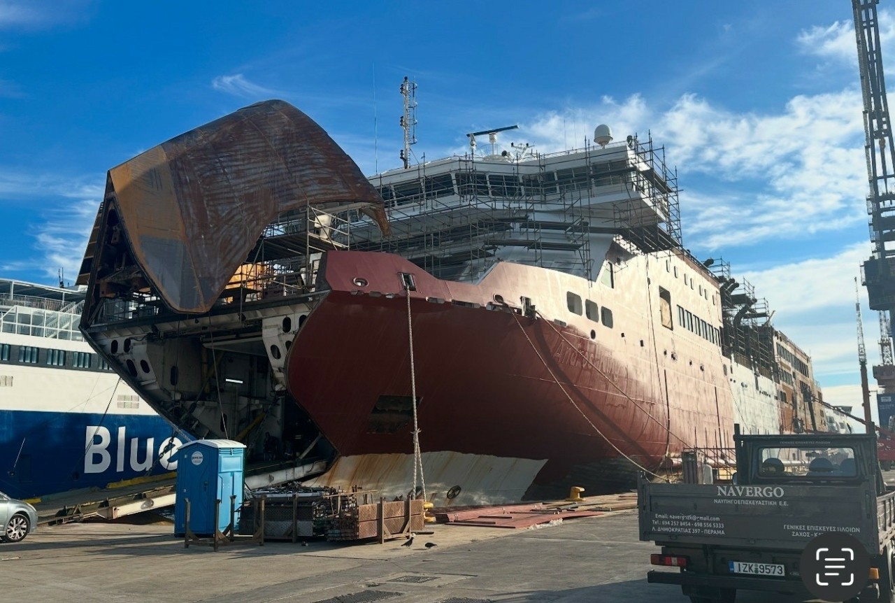 Με εντατικούς ρυθμούς προχωρούν οι εργασίες εκτεταμένης μετασκευής και ανακαίνισης του νεότερου αποκτήματος της Golden Star Ferries, του ANDROS KING, στη Ζώνη Επισκευών Περάματος. Το πλοίο, που αγοράστηκε τον Ιούλιο του 2024 και παραδόθηκε τον Σεπτέμβριο του ίδιου έτους, πέρασε από δεξαμενισμό τον Νοέμβριο και πλέον προετοιμάζεται εντατικά για να ενταχθεί στο δρομολόγιο Ραφήνα – Άνδρος – Τήνος – Μύκονος, πιθανότατα από την καλοκαιρινή περίοδο του 2025.