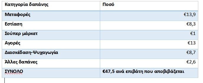 Ο ανωτέρω πίνακας παρουσιάζει τη μέση δαπάνη ανά επιβάτη που αποβιβάστηκε στο λιμάνι του Ηρακλείου ανά κατηγορία δαπάνης.
