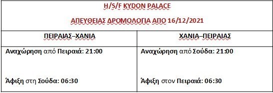 H/S/F KYDON PALACE ΔΡΟΜΟΛΟΓΙΑ 15/12/2021