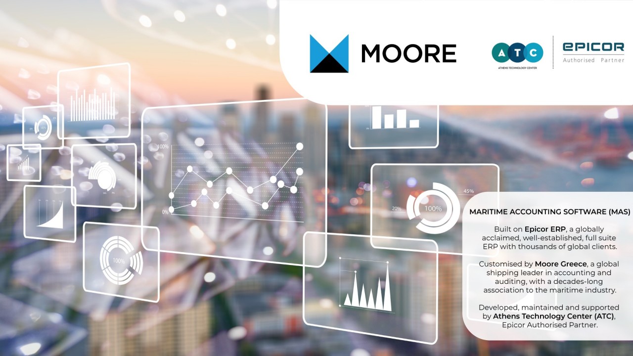 Η Moore Greece, ελεγκτική και συμβουλευτική εταιρεία που εξειδικεύεται στον κλάδο της ναυτιλίας και σε άλλους κλάδους και η Athens Technology Center (ATC), που αναπτύσσει και παρέχει καινοτόμες, ολοκληρωμένες λύσεις πληροφορικής για όλες τις επιχειρηματικές λειτουργίες, παρουσιάζουν το Maritime Accounting Software, μια ολοκληρωμένη, πλήρως επεκτάσιμη και οικονομικά συμφέρουσα λύση λογισμικού, μοναδικά προσαρμοσμένη για τις ανάγκες χρηματοοικονομικής και λογιστικής διαχείρισης στη ναυτιλία.
