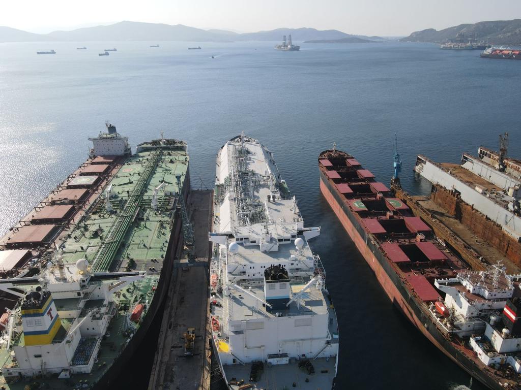 Στις δεξαμενές βρίσκονται συνολικά έξι πλοία της εμπορικής ναυτιλίας.