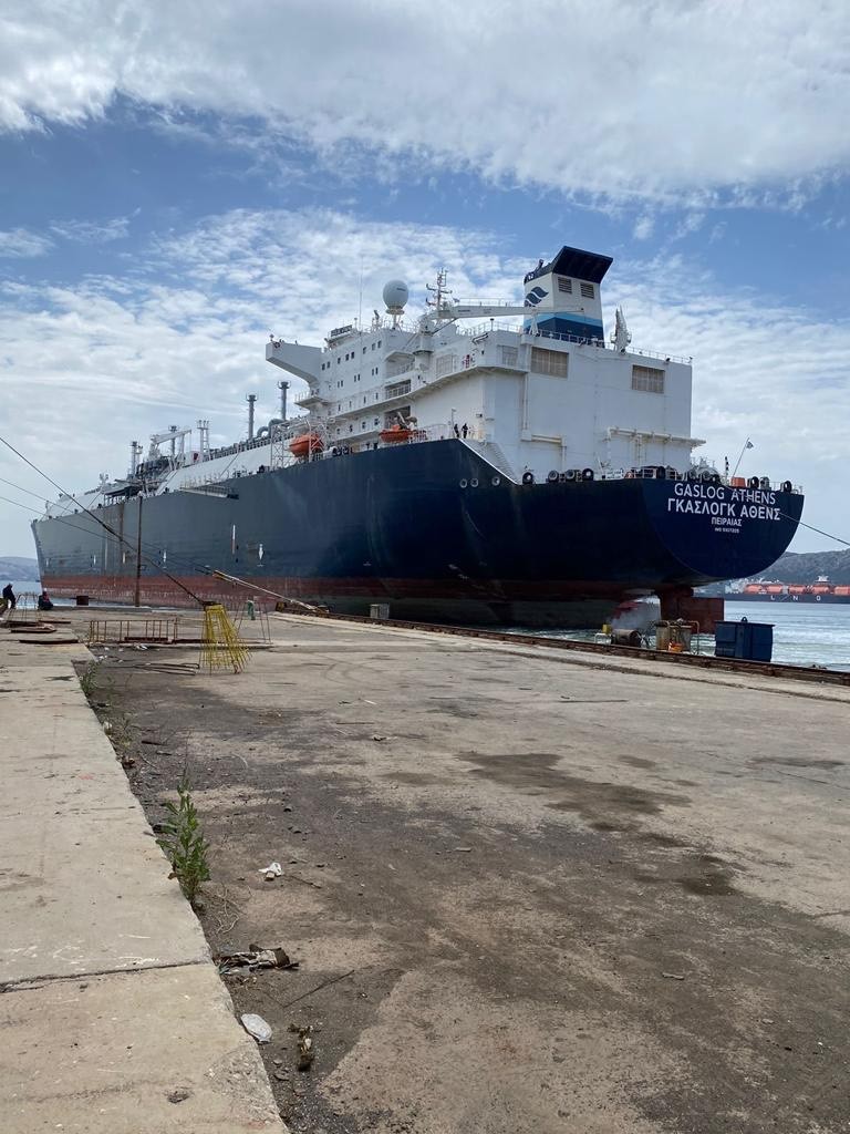Το πλοίο ονομάζεται GASLOG ATHENS, μήκους 285 μέτρων και είναι το 23ο συνολικά που κατέπλευσε στα Ναυπηγεία Ελευσίνας για επισκευή.