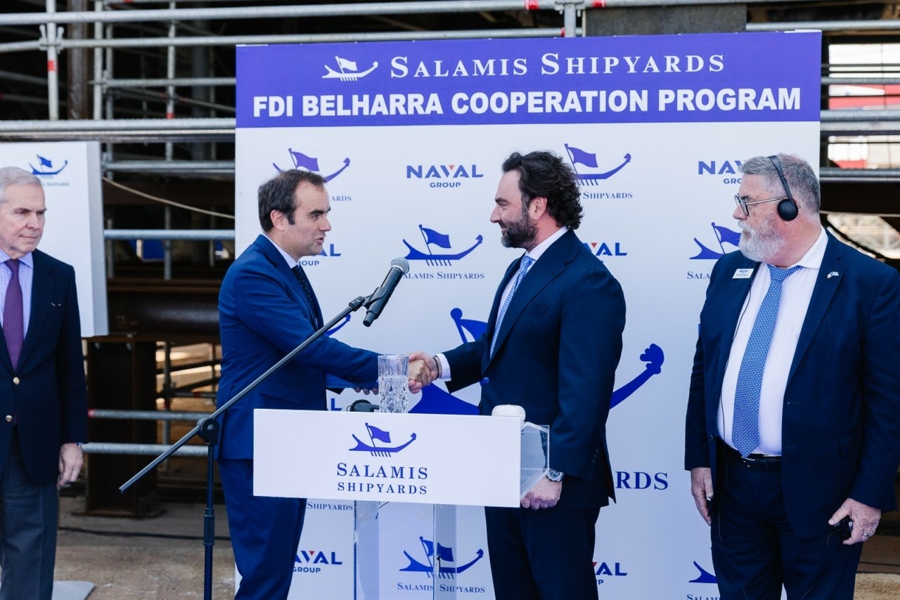 Η σταθερή εμπιστοσύνη και πολύ επιτυχημένη συνεργασία με σημαντικές εταιρείες του εξωτερικού, όπως η μακροπρόθεσμη σχέση που έχει αναπτυχθεί με την Naval Group, προβάλλουν και προάγουν τον στρατηγικό σχεδιασμό και τον σημαντικό μελλοντικό ρόλο των Ναυπηγείων Σαλαμίνας».