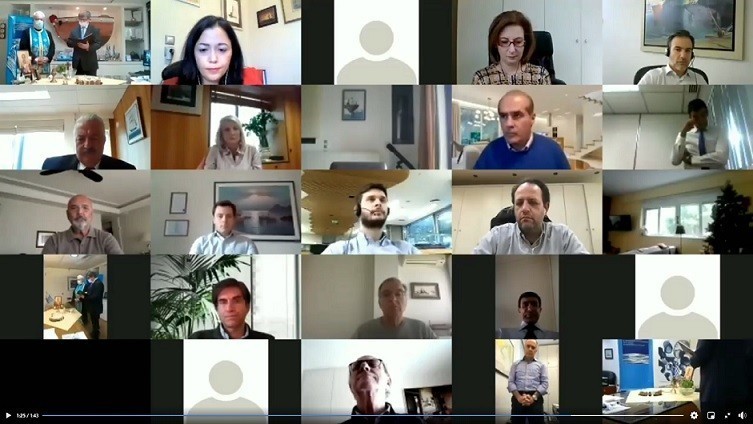 Η εκδήλωση συνεχίστηκε με την διαδικασία της κοπής της βασιλόπιτας όπου αντί για κομμάτια της πίτας μοιράστηκαν διαδικτυακά λαχνοί πρώτα σε όλους τους οργανισμούς και τις εταιρείες μέλη της Ένωσης που παραβρέθηκαν και εν συνεχεία στα 195 μέλη που κέρδισαν 32 δώρα που πρόσφεραν στην Ένωση οι δωροθέτες. Ο τυχερός Ναυτιλιακός οργανισμός που του έπεσε το φλουρί του 2021 είναι η Διεύθυνση Χρηματοδοτήσεων της Tsakos Shipping&Trading/ Tsakos Columbia Shipmanagement (“TCM”) S.A