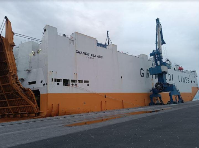 Μετά από τις δύο επιτυχημένες εκφορτώσεις 1.600 και πλέον αυτοκινήτων στο λιμάνι του Βόλου, στις 7 και 19 Ιουλίου 2023, νέο πλοίο, το Ro-Ro Cargo Ship GRANDE ELLADE, κατέπλευσε την Πέμπτη 10 Αυγούστου 2023 στον λιμένα προερχόμενο από την Αμβέρσα, με 1.533 καινούργια αυτοκίνητα (τύπου Mercedes, Volvo, Citroen, Peugeot κ.α.) και 85 ro – ro μηχανήματα έργου (Caterpillar, John Deere κ.α.).