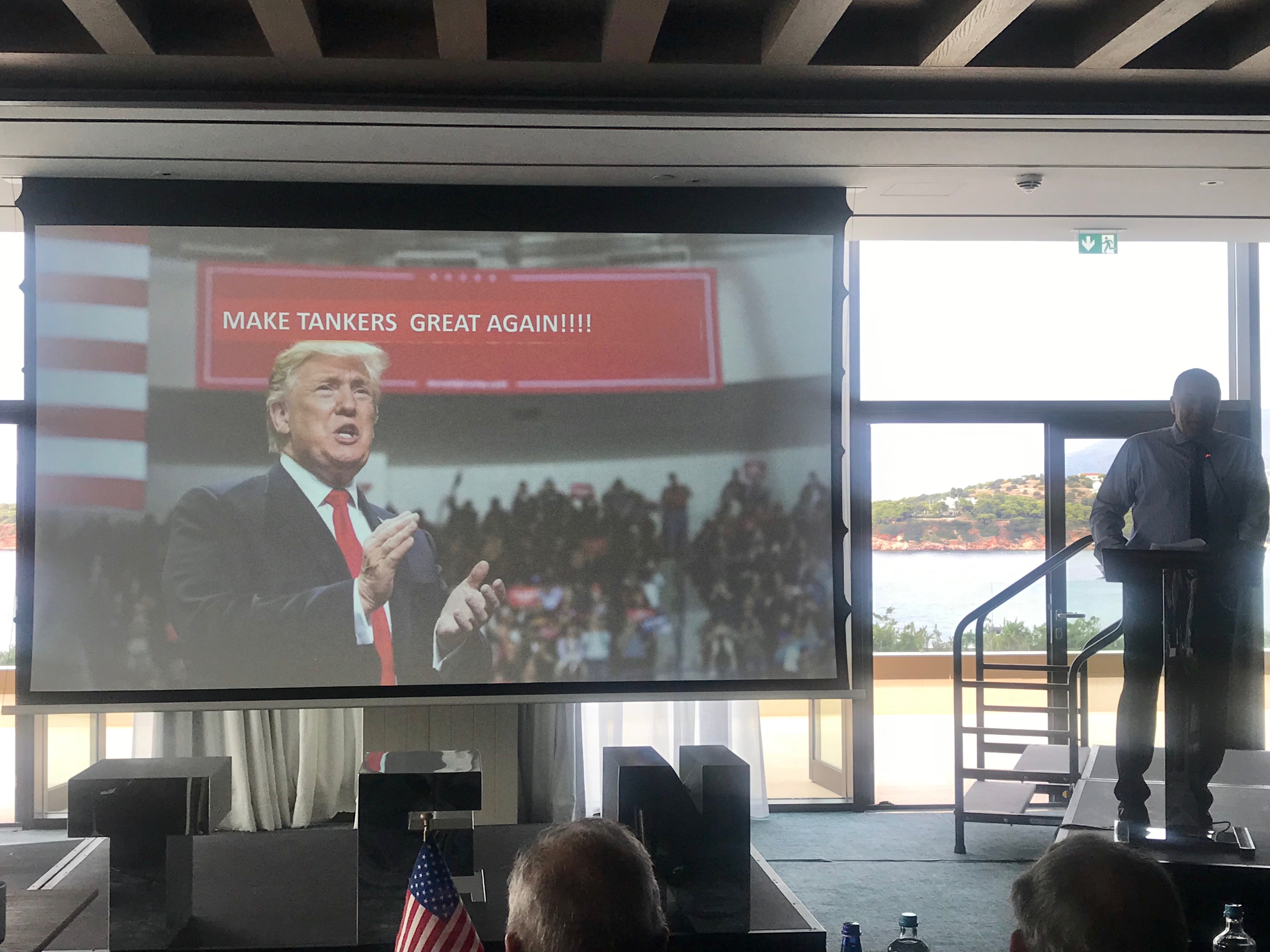 Στον προτζέκτορα της κεντρικής αίθουσας του Αστέρα Βουλιαγμένης ένας ανθρωπάκι καρτούν τρέχει ενώ γύρω του σκάνε νάρκες. Η προβολή τελειώνει και ο ομιλητής λέει: «Αυτή είναι η ζωή σήμερα ενός πλοιοκτήτη. Καλείται να διασχίσει ένα ναρκοπέδιο και αν καταφέρει να επιβιώσει γυρίζει πίσω κοιτάει τι έχει συμβεί και σκέφτεται. τα κατάφερα ίσως κάνω για αυτή τη δουλειά».