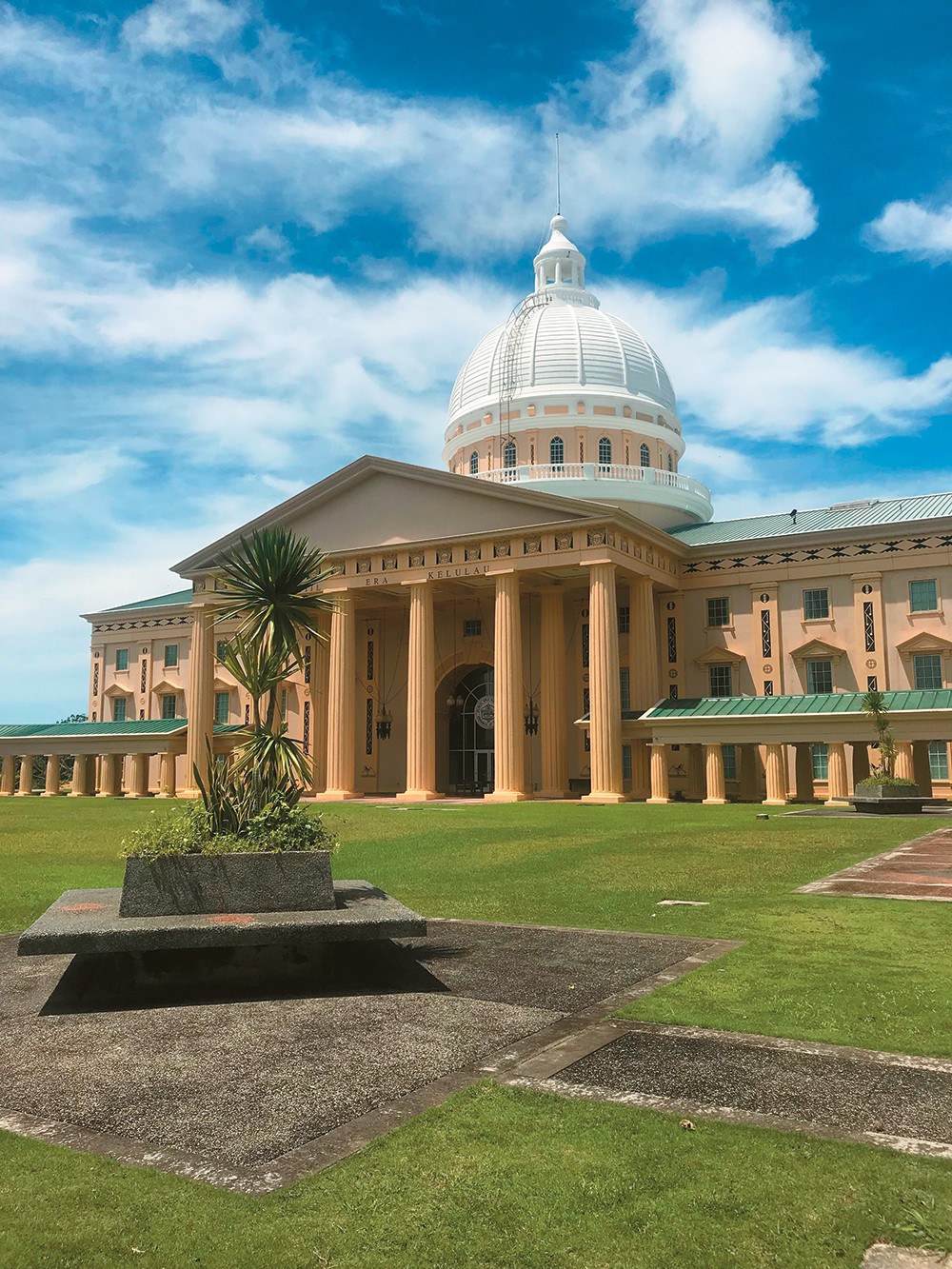 Η αγάπη των κατοίκων του Παλάου για την Ελλάδα αποτυπώνεται στην αρχιτεκτονική του Καπιτωλίου, όπου δεσπόζουν οι αρχαιοελληνικοί κίονες. Το Καπιτώλιο κατασκευάστηκε στην πρώτη δεκαετία του 21ου αιώνα και παραδόθηκε το 2009. Την ιστορία για το πώς ελήφθη η απόφαση για τους κίονες μας διηγήθηκε ο Αλαν Σιντ, εκπρόσωπος του Νηολογίου στο Παλάου και διεκδικητής της προεδρίας της χώρας στις ερχόμενες εκλογές, το φθινόπωρο του 2020: