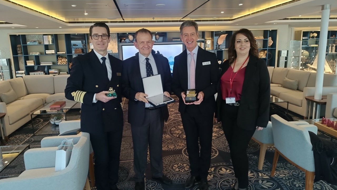 Το πλοίο υποδέχτηκαν ο Διευθύνων Σύμβουλος της ΟΛΒ Α.Ε., Σωκράτης Αναγνώστου, και η Αντιδήμαρχος Τουρισμού του Δήμου Βόλου, Μελπομένη Λαζάρου. Ο CEO Αναγνώστου καλωσόρισε τον Σουηδό πλοίαρχο του κρουαζιερόπλοιου, Carl Fredrik Elgh, με τον οποίο αντάλλαξαν αναμνηστικά δώρα (κεντρική φωτο κειμένου). Οι δύο πλευρές συζήτησαν θέματα που αφορούν την ανάπτυξη της κρουαζιέρας στο λιμάνι του Βόλου και την ενίσχυση της τουριστικής κίνησης στην πόλη.