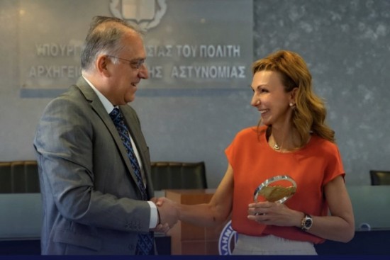 Ο Υπουργός τίμησε την Πρόεδρο για την πολύτιμη προσφορά της ΣΥΝ-ΕΝΩΣΙΣ προς την Ελληνική Αστυνομία και τα Σωφρονιστικά καταστήματα της χώρας, παρουσία του Υφυπουργού Ελευθέριου Οικονόμου, των Γενικών Γραμματέων Δημόσιας Τάξης και Αντιεγκληματικής Πολιτικής κ. Κωνσταντίνου Τσουβάλα και κ. Κωνσταντίνου Παπαθανασίου και του Αρχηγού της ΕΛ.ΑΣ Αντιστράτηγου Κωνσταντίνου Σκούμα.