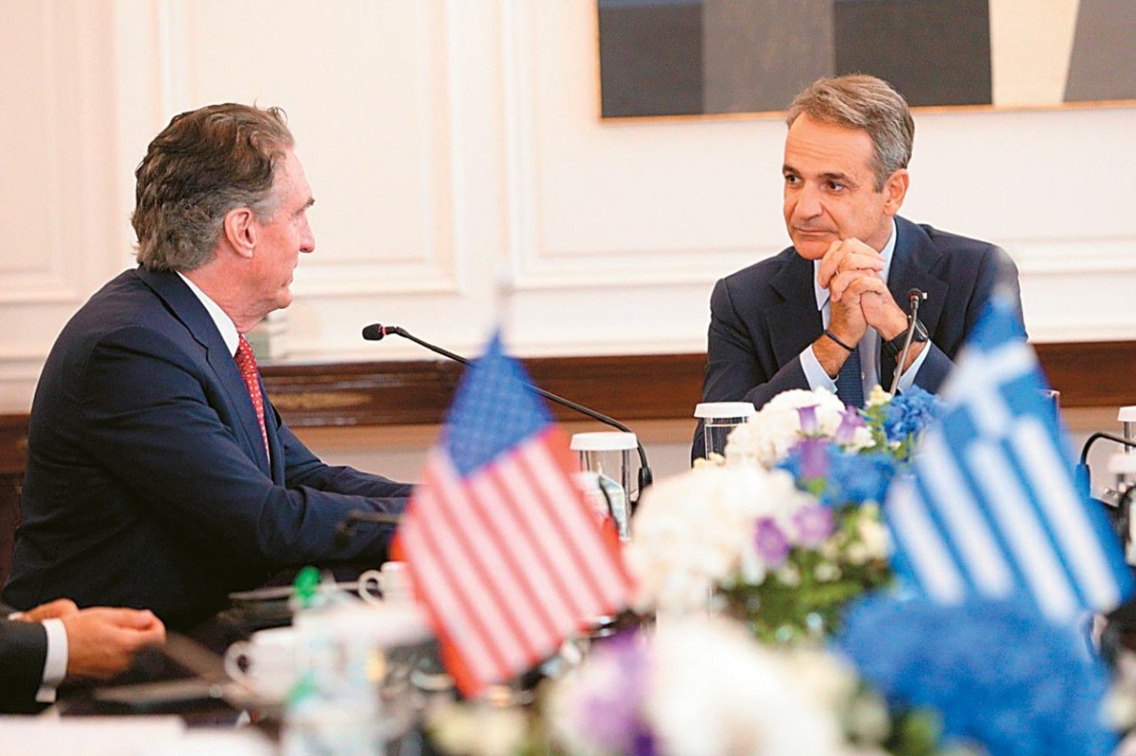 *Στην κεντρική φωτογραφία η συνάντηση του πρωθυπουργού Κυριάκου Μητσοτάκη με τον υπουργό Εσωτερικών των Ηνωμένων Πολιτειών Αμερικής, Νταγκ Μπούργκουμ, στο Μέγαρο Μαξίμου στις 11 Σεπτεμβρίου