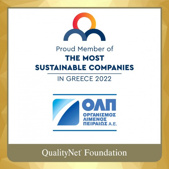 Συγκεκριμένα με την ανακοίνωση του Quality Net Foundation για τα Ετήσια Αποτελέσματα Αξιολόγησης των επιχειρηματικών επιδόσεων στη Βιώσιμη Ανάπτυξη με βάση τα κριτήρια ESG, ο Οργανισμός Λιμένος Πειραιά συμπεριλαμβάνεται στη λίστα με τις πιο Βιώσιμες Εταιρείες στην Ελλάδα για το 2022. Η ένταξη των επιχειρήσεων στην εν λόγω λίστα, «The most Sustainable Companies in Greece», αποτελεί την ανώτατη διάκριση Βιώσιμης Ανάπτυξης στην Ελλάδα.