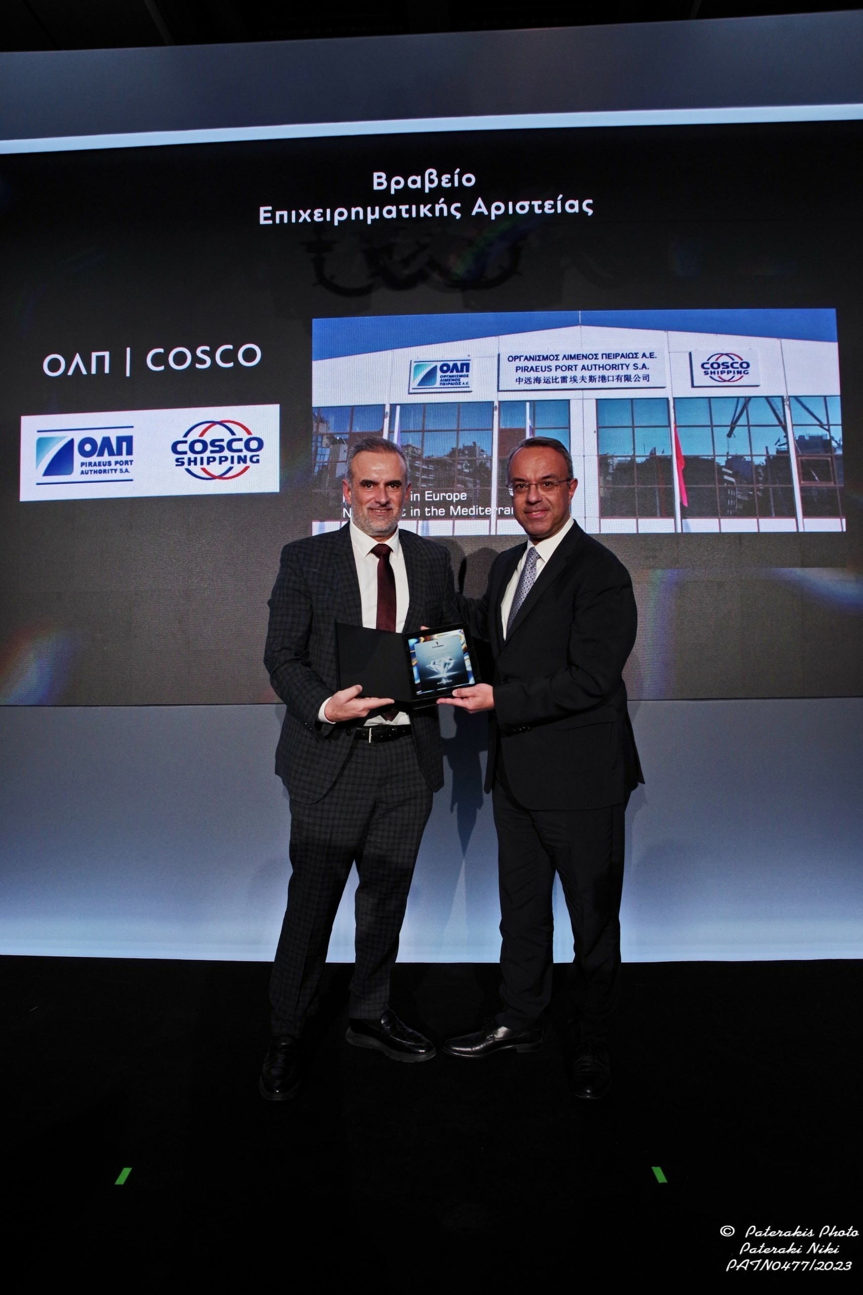 Η ΟΛΠ Α.Ε. απέσπασε τη διάκριση «Diamonds of the Greek Economy 2023”, το οποίο παρέλαβε ο Αναπληρωτής Διευθύνων Σύμβουλος της εταιρείας, κ. Παναγιώτης Τσώνης από τον Υπουργό Μεταφορών και Υποδομών, κ. Χρήστο Σταϊκούρα, σε ειδική εκδήλωση που διοργάνωσε η ΝΑΥΤΕΜΠΟΡΙΚΗ την Πέμπτη 14 Δεκεμβρίου 2023, στο ξενοδοχείο Μεγάλη Βρετανία.