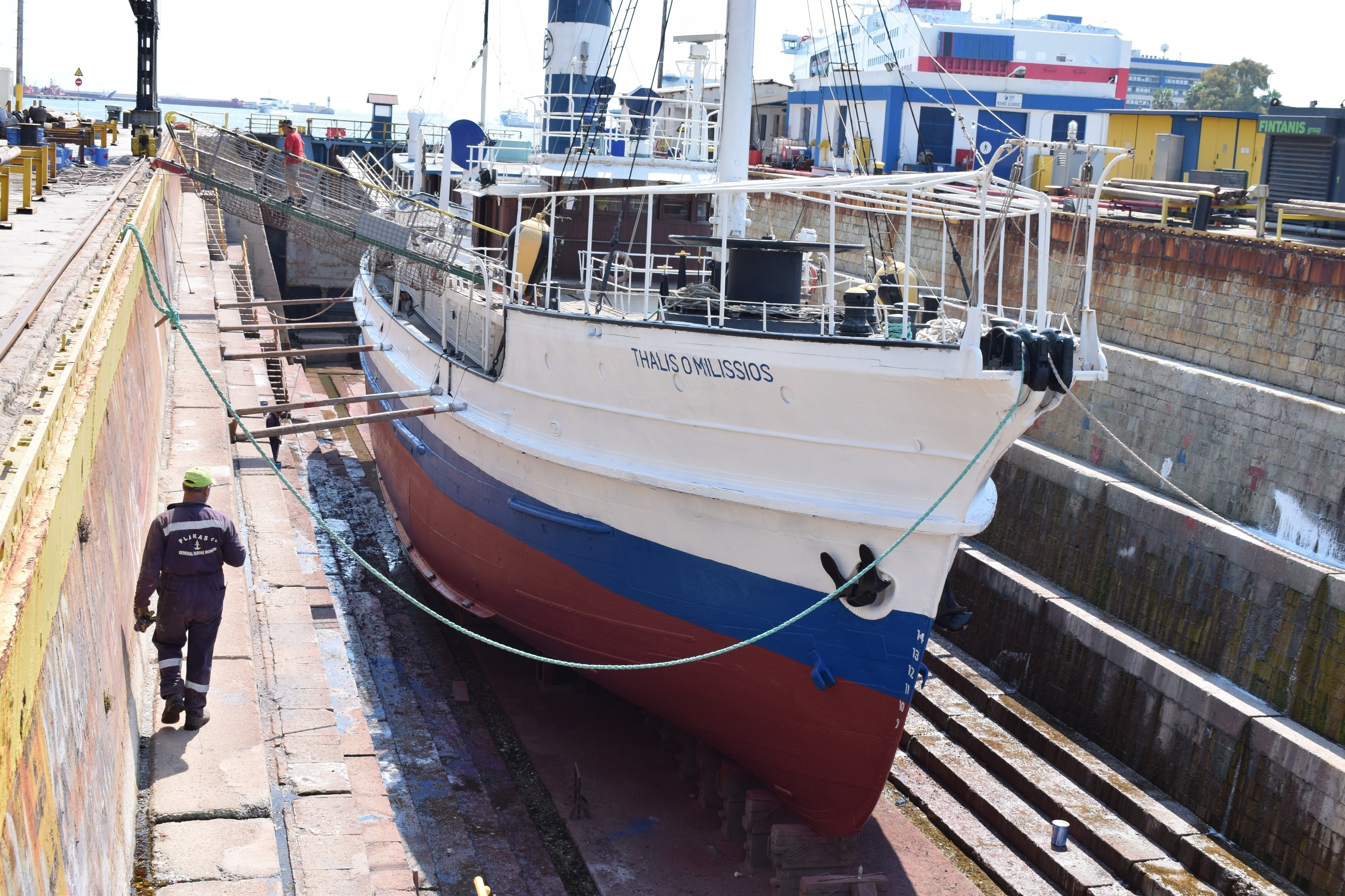 ‘’Η Διοίκηση της ΟΛΠ Α.Ε. αποφάσισε την απαλλαγή από κάθε δαπάνη του δεξαμενισμού ενός ιστορικού πλοίου που είναι συνδεδεμένο με τη ναυτική παράδοση και ιστορία», δήλωσε ο Deputy CEO Capt. Weng Lin κατά την επίσκεψη στο χώρο του δεξαμενισμού και τη συνάντηση του με τον Πρόεδρο του Ναυτικού Επιμελητηρίου Ελλάδος, κ. Γεώργιο Πατέρα και τον Πρόεδρο του Ναυτικού Μουσείου Αιγαίου, κ. Γεώργιο Μακρυμίχαλο.