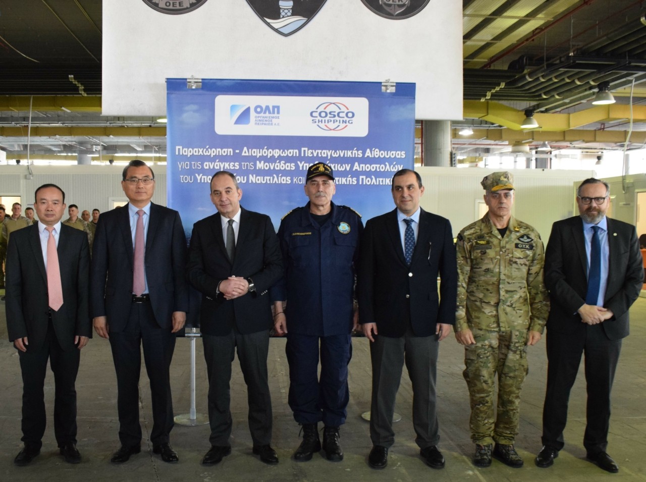 Σε ειδική εκδήλωση που πραγματοποιήθηκε την Τετάρτη 22 Φεβρουαρίου 2023 στον χώρο της πενταγωνικής αίθουσας της ΟΛΠ Α.Ε. απονεμήθηκε από τον Υπουργό Ναυτιλίας & Νησιωτικής Πολιτικής κ. Ιωάννη Πλακιωτάκη ευχαριστήρια τιμητική πλακέτα στον Πρόεδρο της ΟΛΠ Α.Ε. κ. Yu Zenggang, για τη σημαντική αυτή απόφαση της εταιρείας, παρουσία του Υφυπουργού Ναυτιλίας & Νησιωτικής Πολιτικής κ. Κώστα Κατσαφάδου, του Γ.Γ. Λιμένων, Λιμενικής Πολιτικής & Ναυτιλιακών Επενδύσεων κ. Ευάγγελου Κυριαζόπουλου, του Αρχηγού του Λιμενικού Σώματος- Ελληνικής Ακτοφυλακής κ. Γεωργίου Αλεξανδράκη και του Διοικητή της Μονάδας Υποβρύχιων Δυνάμεων κ. Ιωάννη Παπαδάκη.