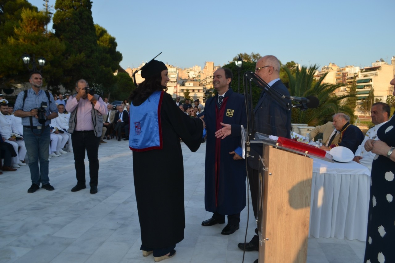 Με κάθε επισημότητα πραγματοποιήθηκε στις 20 Ιουνίου η τελετή αποφοίτησης της 2ης σειράς φοιτητών του Δι-Ιδρυματικού Μεταπτυχιακού Προγράμματος «Διοίκηση στη Ναυτική Επιστήμη και Τεχνολογία» που προσφέρεται από το Τμήμα Ναυτιλίας του Πανεπιστημίου Πειραιώς και τη Σχολή Ναυτικών Δοκίμων.