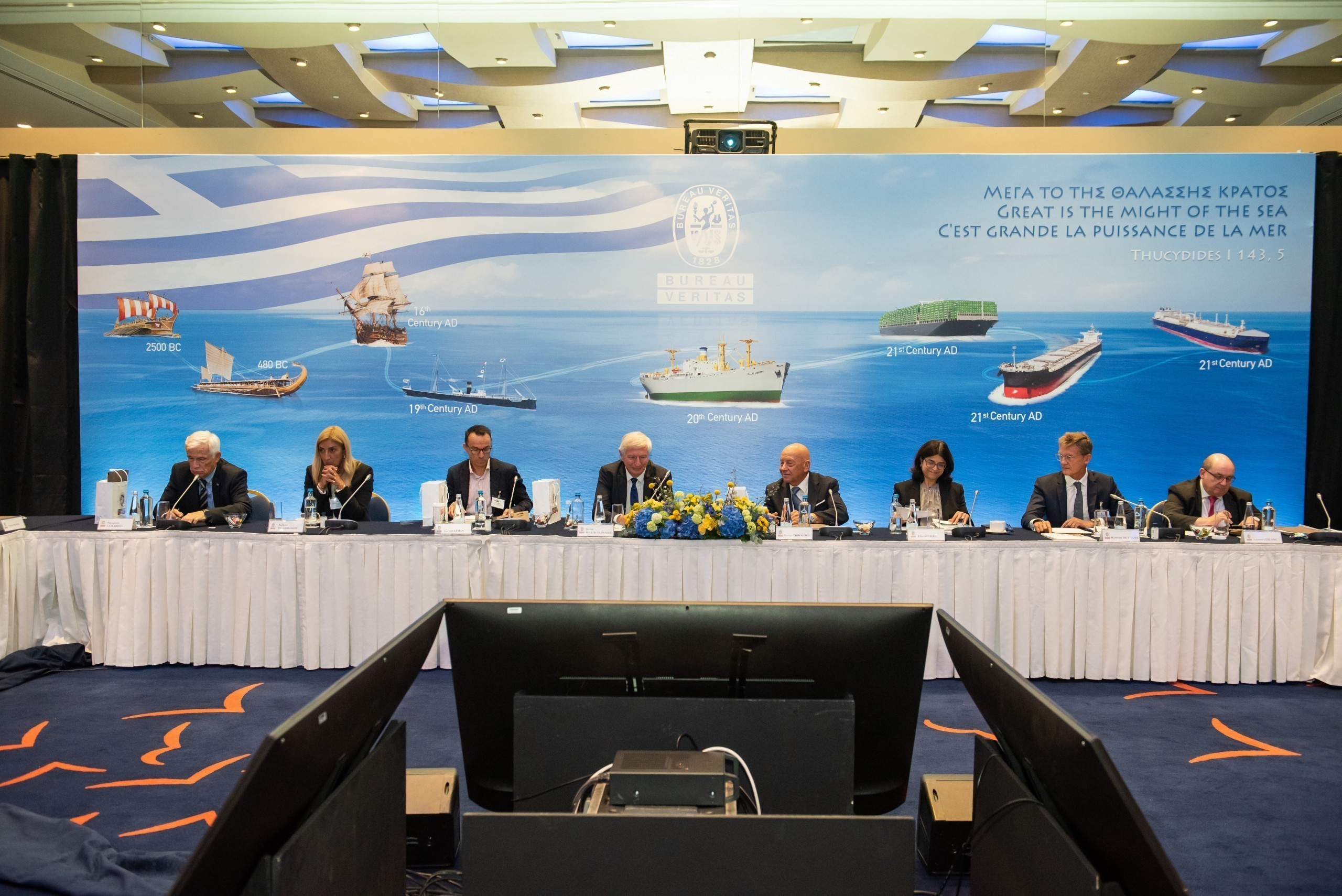 Ο κ. Matthieu de Tugny εξέτασε τη μεγάλη εικόνα της ναυτιλίας και το μεταβαλλόμενο τοπίο, εστιάζοντας στην τεχνογνωσία και την τεχνική αριστεία της BV, ενώ ο κ. Laurent Leblanc, Ανώτερος Αντιπρόεδρος Τεχνικών & Λειτουργιών, επικεντρώθηκε στις τεχνολογικές εξελίξεις στη ναυτιλία.