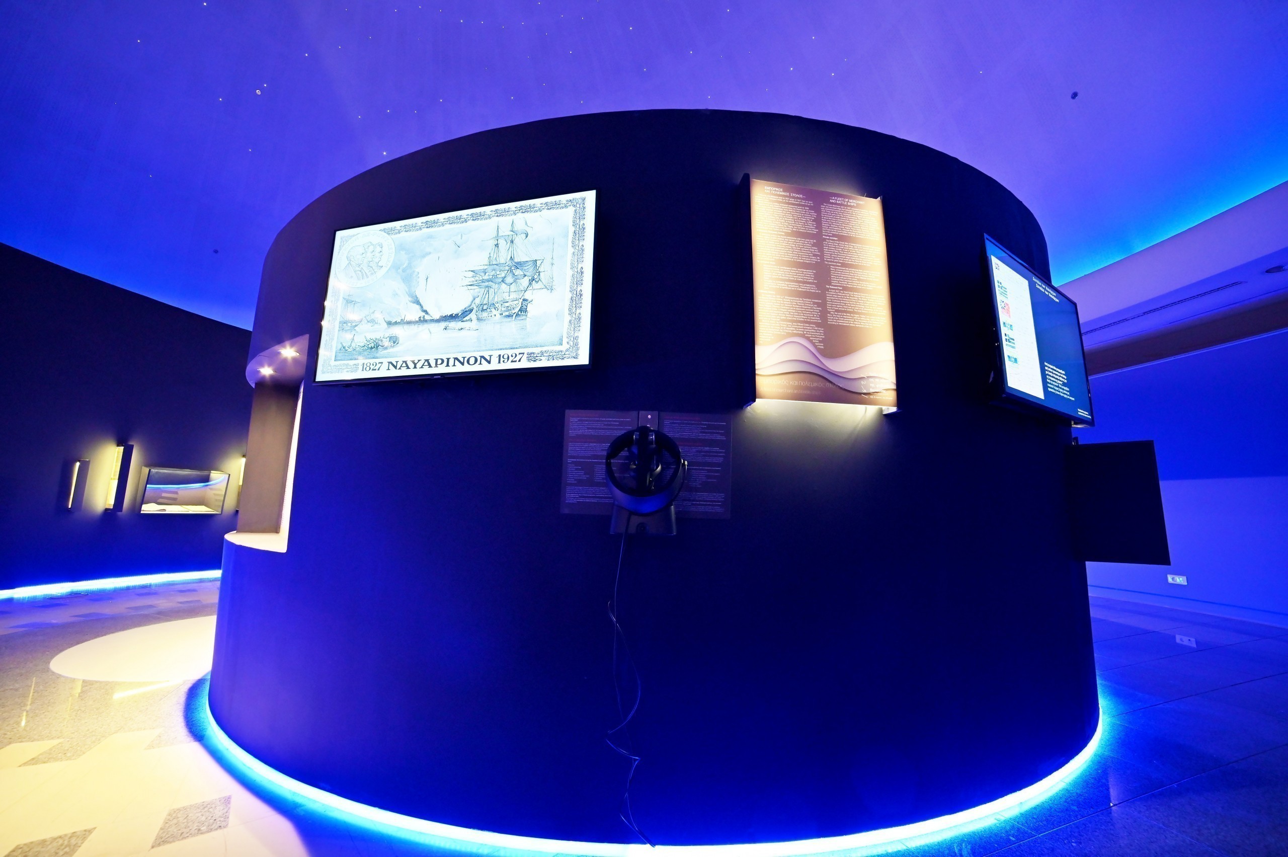 Τα τεκμήρια πλαισιώνονται από καινοτόμες τεχνολογικές εφαρμογές. Έτσι το κοινό θα βρεθεί μπροστά σε εντυπωσιακές διαδραστικές εμπειρίες και εικονικές περιηγήσεις (VR) σε 4 από τα πλοία που πήραν μέρος στην Ναυμαχία του Ναυαρίνου και αναπτύχθηκαν στο πλαίσιο του Έργου ΝΑΥΣ, με συντονιστή το Ίδρυμα Ευγενίδου και επιστημονικό υπεύθυνο το Εθνικό Μετσόβιο Πολυτεχνείο (ΕΜΠ), Σχολή Ναυπηγών Μηχανολόγων Μηχανικών. Ψηφιακές και εικονικές εφαρμογές δημιούργησε επίσης το Ινστιτούτο Τεχνολογιών Πληροφορικής και Επικοινωνίας (ΙΠΤΗΛ) μέσω του Έργου ΕΠΑΝΑΣΤΑΣΙΣ-1821.