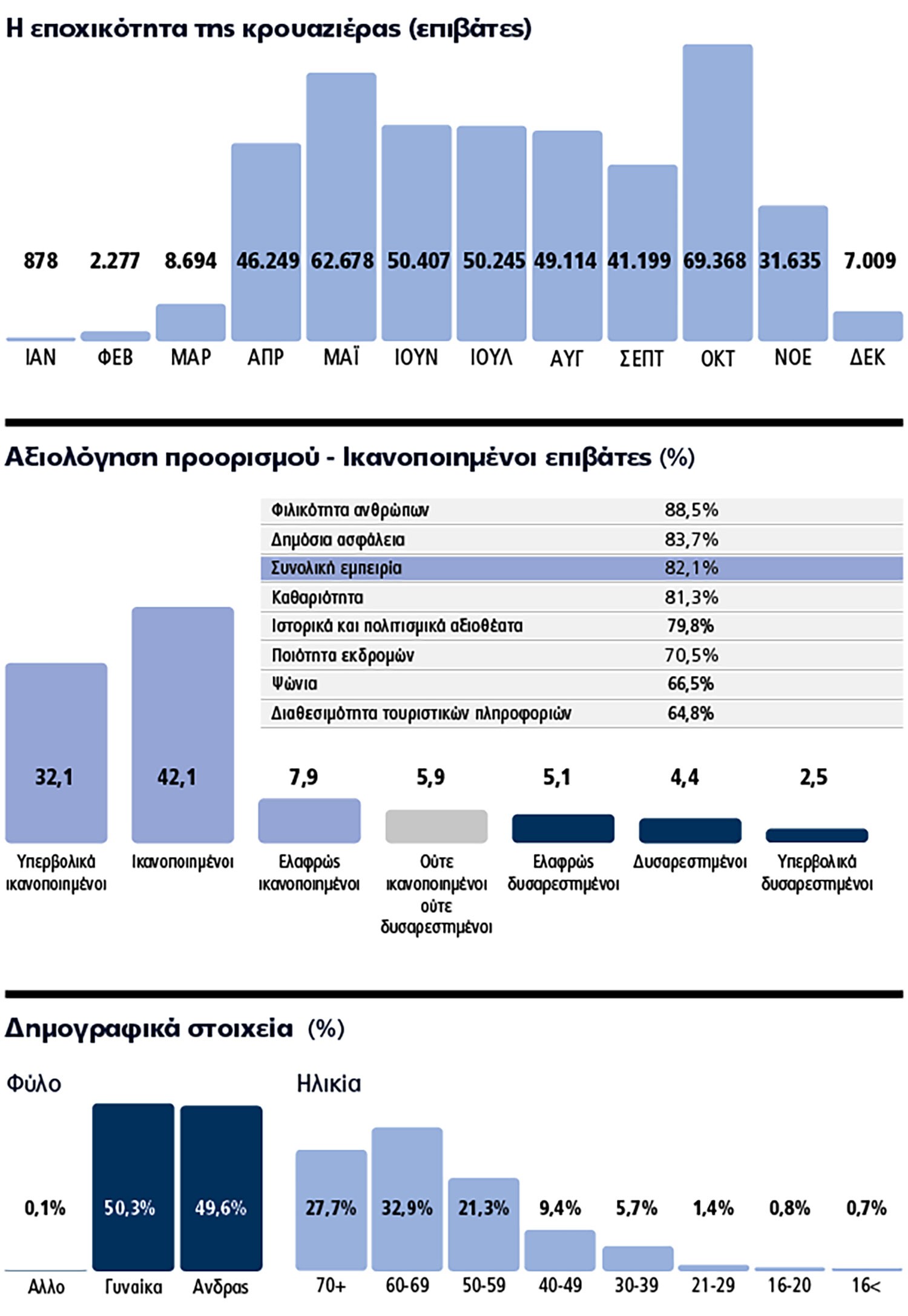 - Το 47% των επιβατών κρουαζιέρας συµµετείχε σε οργανωμένες εκδρομές, δημιουργώντας προστιθέμενη αξία στην τοπική οικονομία της τάξης των 7.678.732 εκατ. ευρώ.