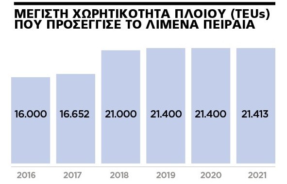 Για το 2021 αναλύθηκαν 218 προσεγγίσεις, οι οποίες πραγματοποιήθηκαν μέσα στον Νοέμβριο. Σε μηνιαία βάση προσεγγίζουν τον Πειραιά πλοία συνολικής χωρητικότητας άνω του 1.000.000 TEUs.