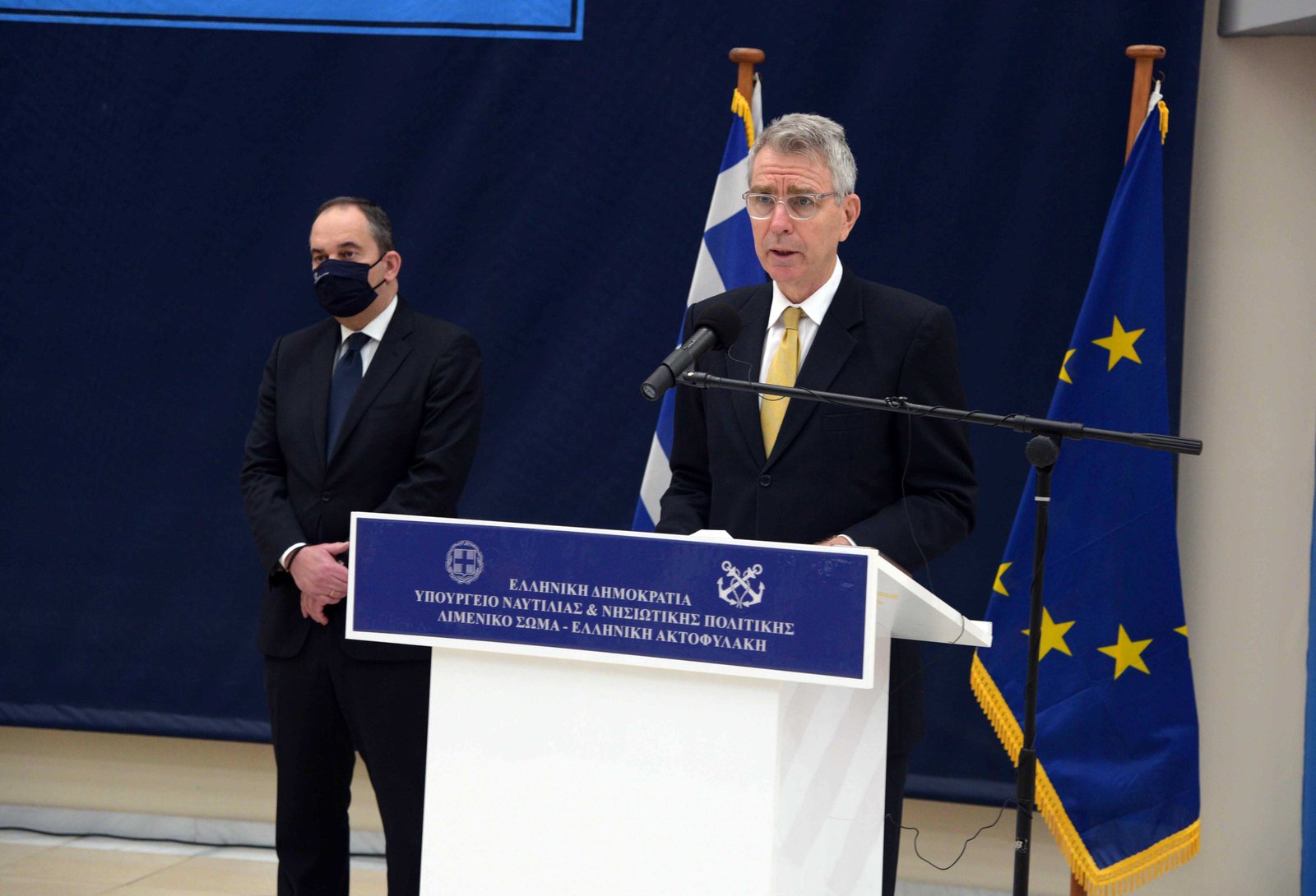 «Καλωσορίζουμε ένα ακόμη πραγματικό ορόσημο στις σχέσεις μεταξύ των ΗΠΑ και της Ελληνικής Ακτοφυλακής με την υπογραφή του σημερινού Μνημονίου Συναντίληψης», είπε από την πλευρά του ο αμερικανός Πρέσβης στην Ελλάδα, Τζέφρι Πάιατ και συνέχισε: