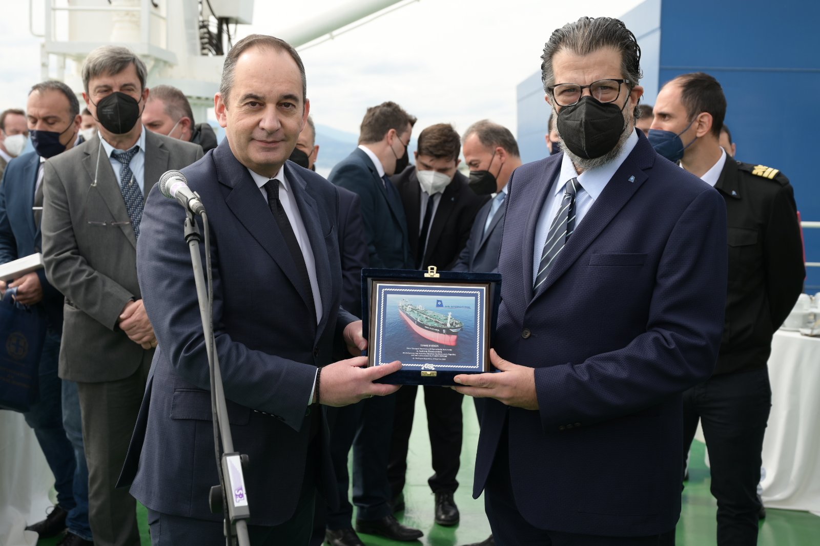 «Αισθάνομαι ιδιαίτερη τιμή», υπογράμμισε ο κ. Πλακιωτάκης,«που παρευρίσκομαι σήμερα στον αγιασμό και στην τελετή ύψωσης της Ελληνικής σημαίας στο νεότευκτο δεξαμενόπλοιο, μια σημαντική στιγμή που μας γεμίζει όλους με αισιοδοξία. Για την πλοιοκτησία είναι μία ημέρα χαράς αφού αυξάνει και επεκτείνει το στόλο της αλλά ταυτόχρονα αποδεικνύει έμπρακτα την προσφορά της στην πατρίδα και τη ναυτιλία».