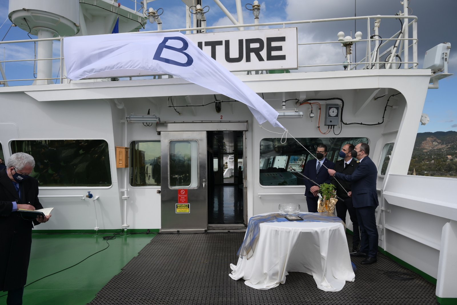 Ο κ. Πλακιωτάκης εξέφρασε την ευγνωμοσύνη του στην οικογένεια Βαρδινογιάννη για την επιλογή της να υψώσει την ελληνική σημαία σε ένα πλοίο που θα το κινούν Έλληνες ναυτικοί, αλλά και γιατί διαχρονικά στηρίζει με πράξεις την ελληνική σημαία.
