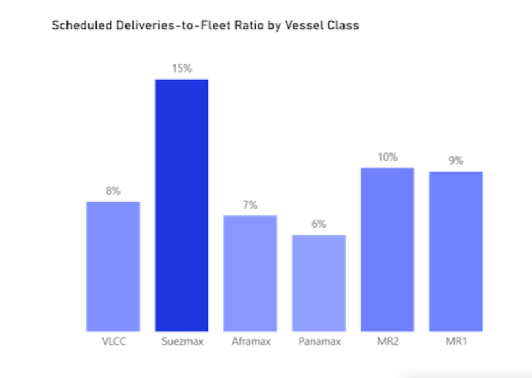 Παρά τη σημερινή περιορισμένη έκθεση, οι μελλοντικές παραδόσεις μη κινεζικών δεξαμενόπλοιων υποδηλώνουν σταδιακή αύξηση κινδύνου. Το 39% του παγκόσμιου ναυπηγικού προγράμματος αφορά πλοία μη κινεζικής κατασκευής, κυρίως από Ν. Κορέα (16%), Ιαπωνία (5%) και Βιετνάμ (4%). Οι υψηλότεροι ρυθμοί ανανέωσης καταγράφονται στα Suezmax (15%), MR2 (10%), MR1 (9%), VLCC (8%), Aframax (7%) και Panamax (6%).