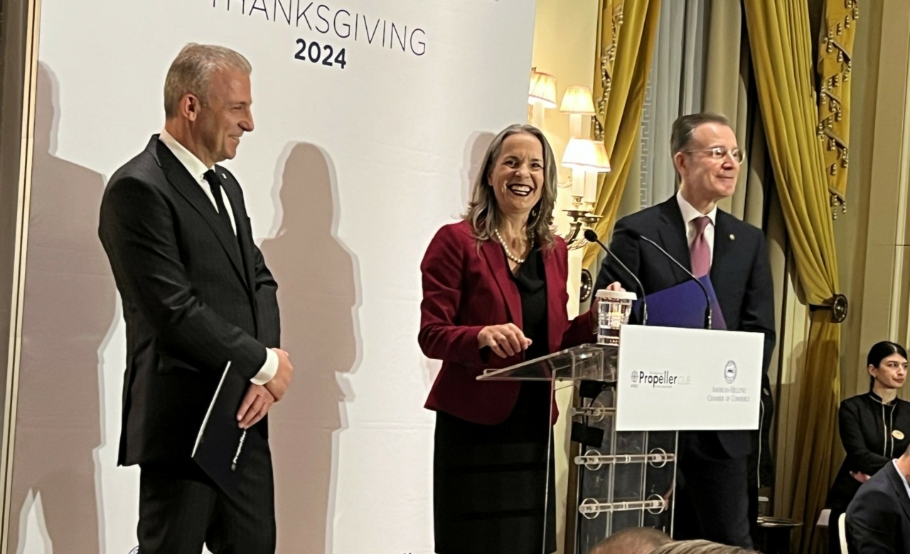Η στενή σχέση μεταξύ Ελλάδος και ΗΠΑ με τις προοπτικές για ακόμη μεγαλύτερες συνεργασίες σε όλα τα επίπεδα να είναι ευοίωνες επισημάνθηκε στη διάρκεια του δείπνου για την Ημέρα των Ευχαριστιών που παρέθεσαν χθες Τρίτη 26 Νοεμβρίου το Propeller Club Port of Piraeus με το Αμερικανο-Ελληνικό Εμπορικό Επιμελητήριο παρουσία υψηλόβαθμων στελεχών της πρεσβείας των ΗΠΑ και πιο συγκεκριμένα η Deputy Chief of Mission (DCM) Maria Olson και ο Joshua Huck, Deputy Assistant Secretary, Bureau of European and Eurasian Affairs, U.S. Department of State.