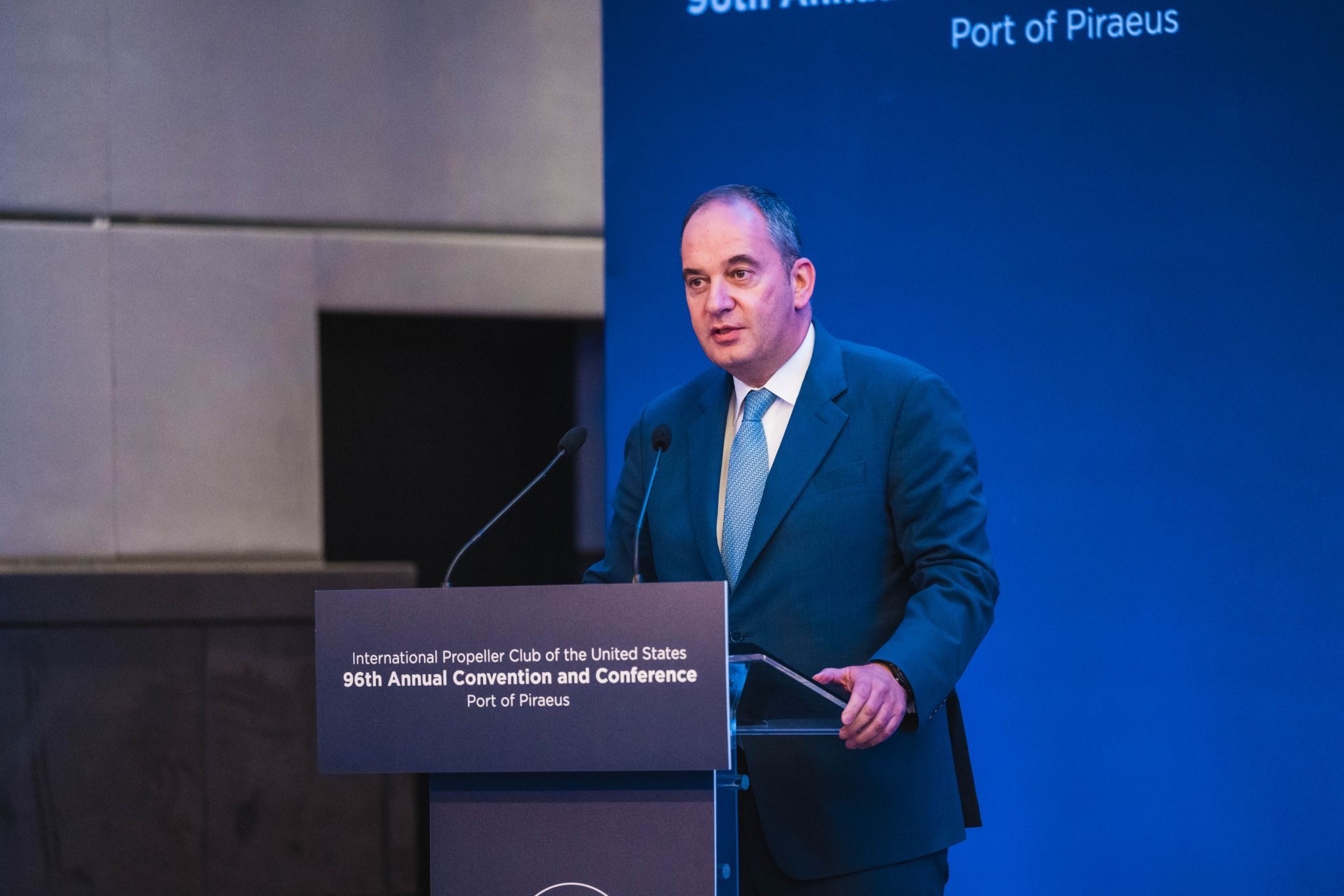 Ο Γιάννης Πλακιωτάκης εξήρε τη δύναμη της ελληνόκτητης ναυτιλίας επισημαίνοντας ότι με 5.000 πλοία ελέγχει το 21% της παγκόσμιας χωρητικότητας –DWT, το 32% των δεξαμενόπλοιων, τα 23% των πλοίων μεταφοράς LNG και το 25% των φορτηγών πλοίων, και τόνισε: «Η ελληνική ναυτιλία είναι σημαντικός παράγοντας για να συνεχίσει να κινείται και να αναπτύσσεται η παγκόσμια οικονομία».