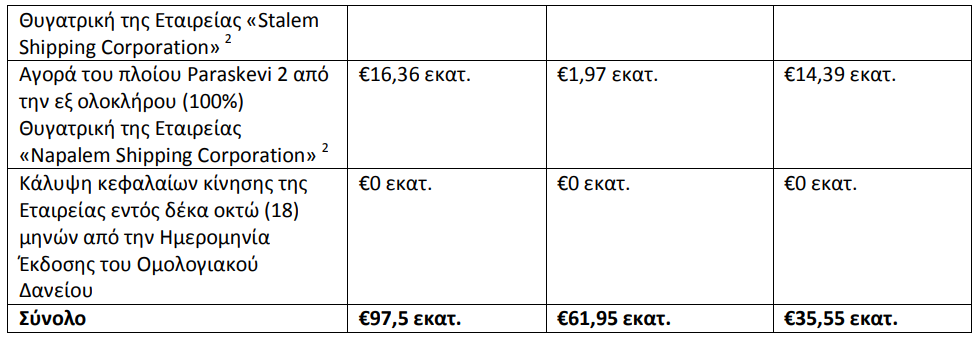Ειδικότερα, για την ολοκλήρωση της αγοράς του πλοίου Venus Harmony, η Εταιρεία κατέβαλε σε Ευρώ το υπολειπόμενο ποσό ύψους €22,52 εκατ. δυνάμει του Μνημονίου Συμφωνίας μεταξύ της εξ ολοκλήρου (100%) Θυγατρικής της Εταιρείας «Vaslem Shipping Corporation», και της εξ ολοκλήρου (100%) Θυγατρικής της Εγγυήτριας «Armonikos Shipping Corporation». Το ως άνω ποσό διατέθηκε μέσω αύξησης του μετοχικού κεφαλαίου της θυγατρικής Εταιρείας «Vaslem Shipping Corporation» που απέκτησε το πλοίο Venus Harmony.