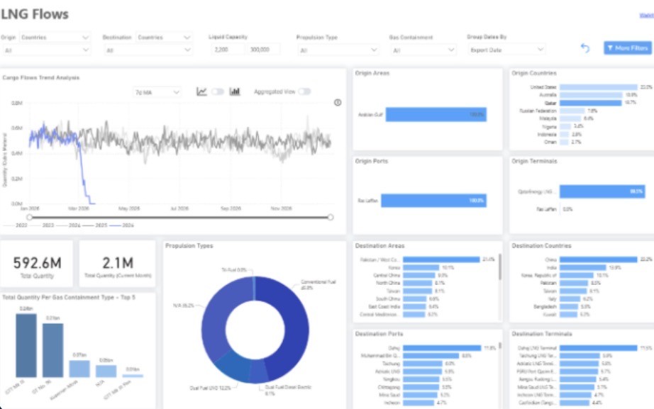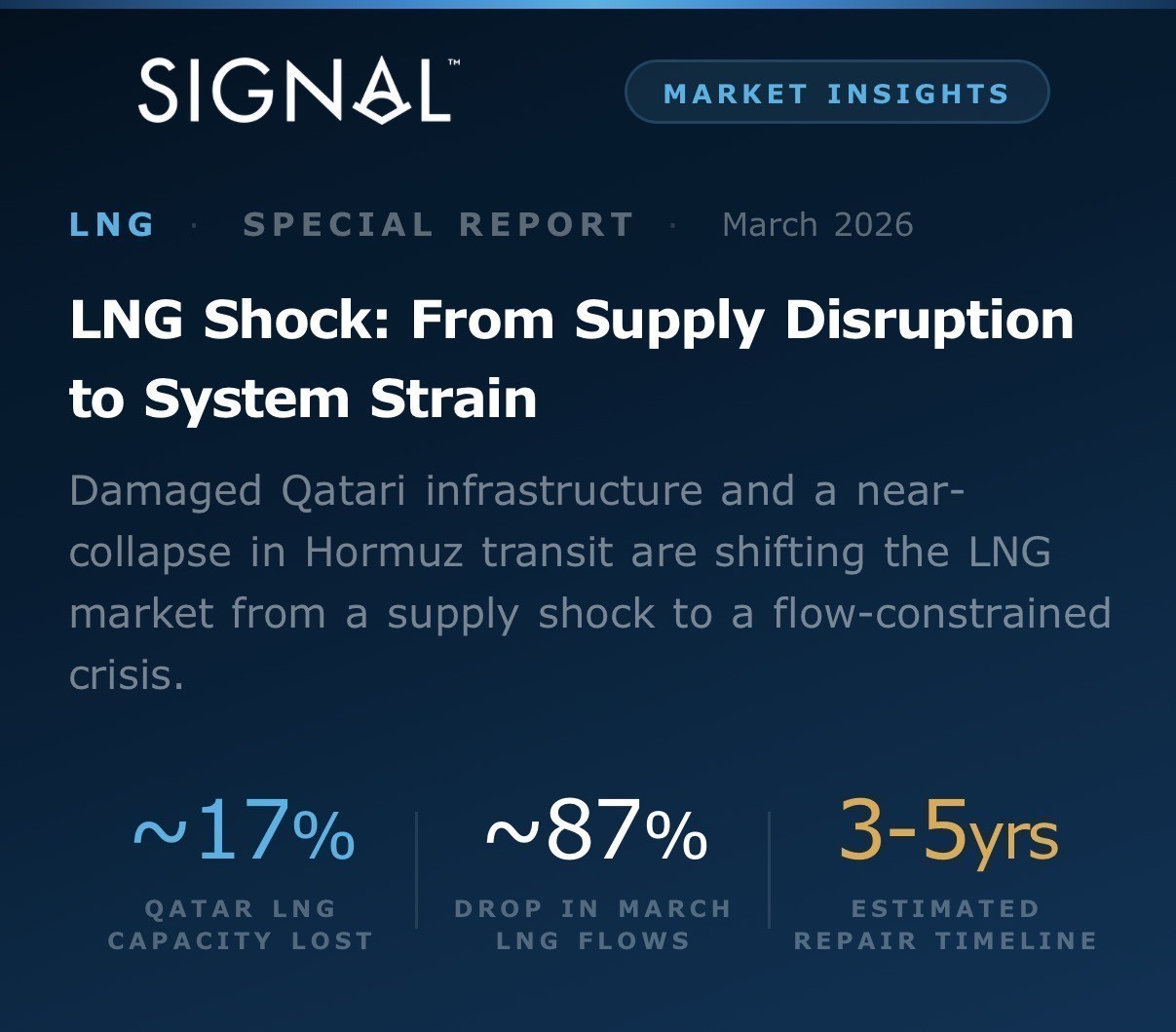 Σε περίοδο έντονης αναταραχής εισέρχεται η παγκόσμια αγορά υγροποιημένου φυσικού αερίου (LNG), σύμφωνα με την ανάλυση της Mαρία Μπερτζελέτου της SIGNAL, μετά τα πρόσφατα πλήγματα σε ενεργειακές υποδομές του Κατάρ.