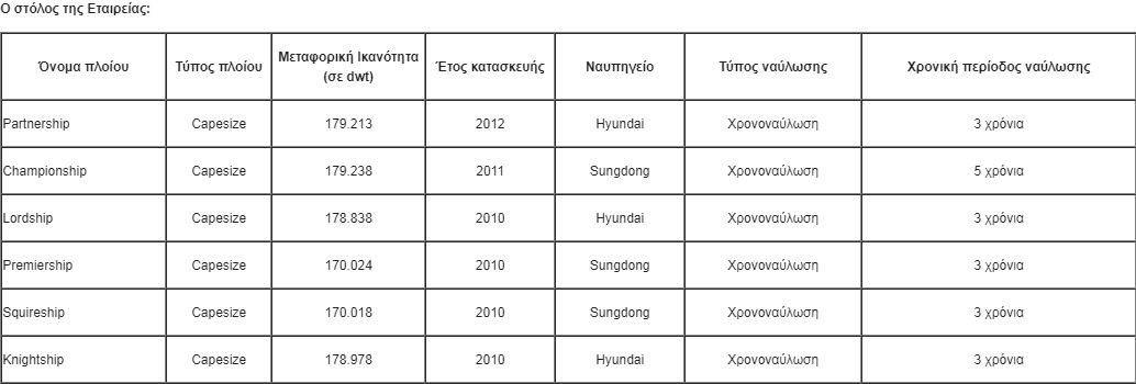Ο στόλος της Εταιρείας: