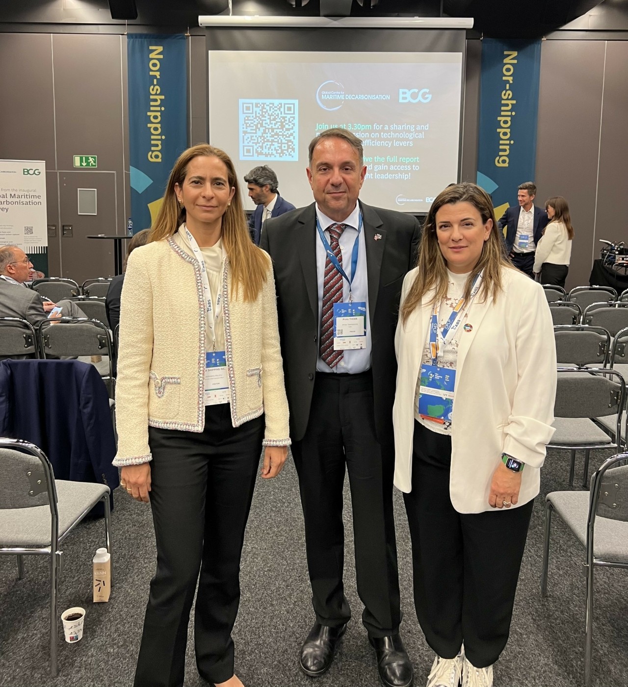 Στη συνέχεια αναφέρθηκε στην ανάγκη επιμερισμού του κόστους προς την πράσινη μετάβαση : «Θα πρέπει να μοιραστεί το ρίσκο και το κόστος μεταξύ των ναυτιλιακών εταιρειών, των ναυπηγείων, των λιμανιών και των ναυλωτών. Επενδύουμε σε νέες τεχνολογίες και στο τέλος της ημέρας τα κέρδη τα καρπώνεται ο ναυλωτής. Για αυτό πρέπει να συνεργαστούμε όλοι.»