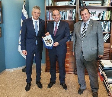 Στο τέλος, ο Δημήτρης Ματθαίου ευχαρίστησε θερμά τον κύριο Υπουργό για την υποδοχή και στήριξή του και του επέδωσε το λάβαρο του Maritime Chapter.