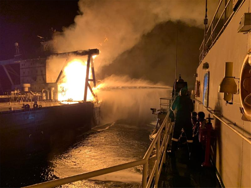 Η πυρκαγιά ξέσπασε στο μηχανοστάσιο χθες Πέμπτη το πρωί και εξαπλώθηκε στη γέφυρα του πλοίου, το οποίο έχει ναυλωθεί από την Indian Oil Corp (IOC).