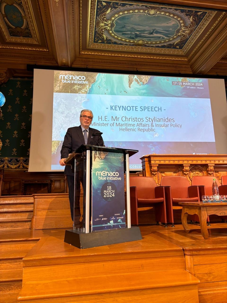Την ανάγκη συνεργασίας για την αντιμετώπιση κοινών προκλήσεων στη θάλασσα, όπως είναι οι απειλές για τη βιοποικιλότητα, η παράνομη και άναρχη αλιεία, η υποβάθμιση του περιβάλλοντος αλλά και οι απειλές για την ελευθερία της ναυσιπλοΐας και το διασυνοριακό έγκλημα, επισήμανε ο Υπουργός Ναυτιλίας και Νησιωτικής Πολιτικής, Χρήστος Στυλιανίδης, κατά την ομιλία του στη “Διάσκεψη για τη Γαλάζια Πρωτοβουλία” που πραγματοποιήθηκε στο Μονακό την 18.3.2024 (Monaco Blue Initiative Conference).