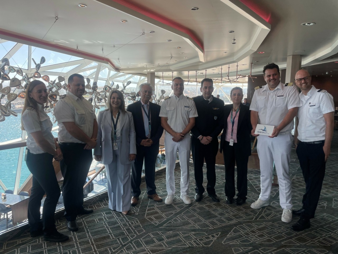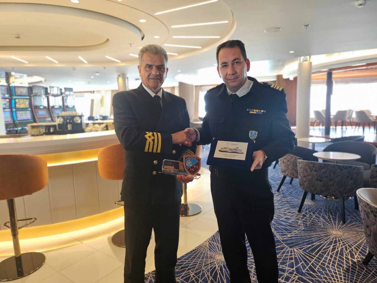 Ο Πρόεδρος του Οργανισμού Λιμένος Ηρακλείου Ιωάννης Βαρδαβάς στο πλαίσιο της εθιμοτυπικής επίσκεψης, μετέβη και στα δύο κρουαζιερόπλοια συνοδευόμενος από τον Λιμενάρχη του Κεντρικού Λιμεναρχείου Ηρακλείου κ. Νικόλαο Τσομπάνη από την Υπεύθυνη του Τομέα Κρουαζιέρας του ΟΛΗ Κυριακή Καμπανά και από την Ειδική Σύμβουλο του ΟΛΗ Ελένη Τσαντηράκη.