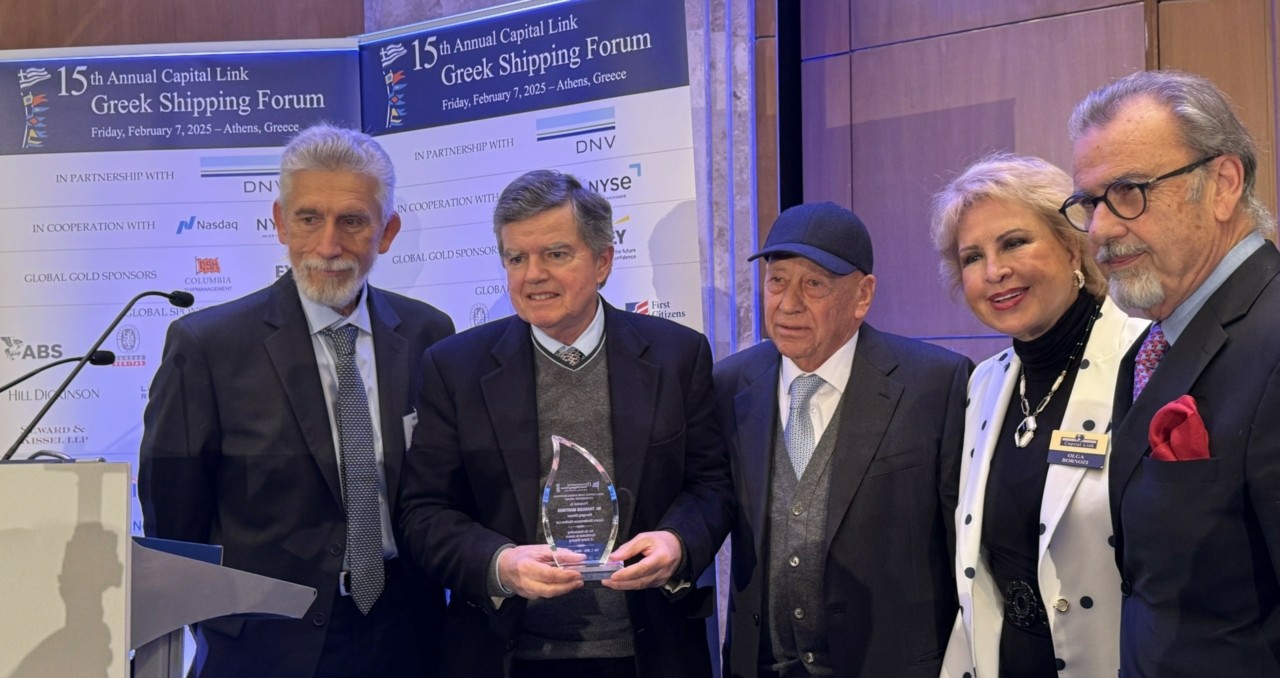 Με το «Greek Shipping Leadership Award» τιμήθηκε ο Θανάσης Μαρτίνος, ένας από τους πιο διακεκριμένους Έλληνες εφοπλιστές στο πλαίσιο του ναυτιλιακού συνεδρίου της Capital Link που διοργανώνουν ο Νικόλας και η Όλγα Μπορνόζη. Η ομιλία του, η οποία έκλεισε με τη φράση «Η τεχνητή νοημοσύνη δεν μπορεί να προβλέψει τις περιπέτειες των Ελλήνων εφοπλιστών», εστίασε στις αβέβαιες και συχνά απρόβλεπτες εξελίξεις που διαμόρφωσαν το τοπίο της ναυτιλίας τα τελευταία πέντε χρόνια.