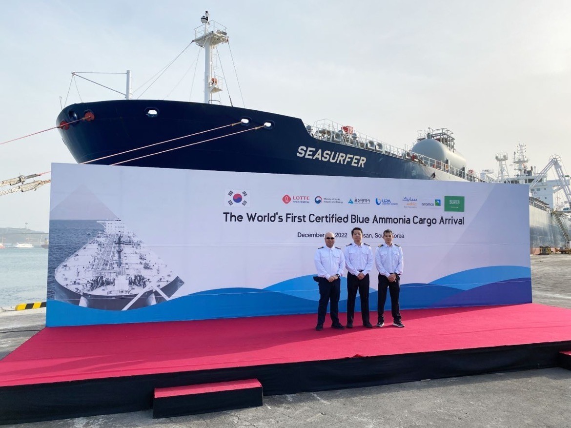 Το πρώτο πιστοποιημένο, παγκοσμίως, φορτίο μπλε αμμωνίας παρέδωσε το πλοίο μεταφοράς υγροποιημένου φυσικού αερίου-LNG Carrier “Seasurfer” μεταφορικής ικανότητας 38.000 κυβικών μέτρων, ναυπηγημένο το 2017, που ανήκει στη Thenamaris του Νικόλα Μαρτίνου. Η παράδοση έγινε στο Ουσλάν της Νοτίου Κορέας. Φορτώθηκε στο Αλ Τζουμπάιλ της Σαουδικής Αραβίας.