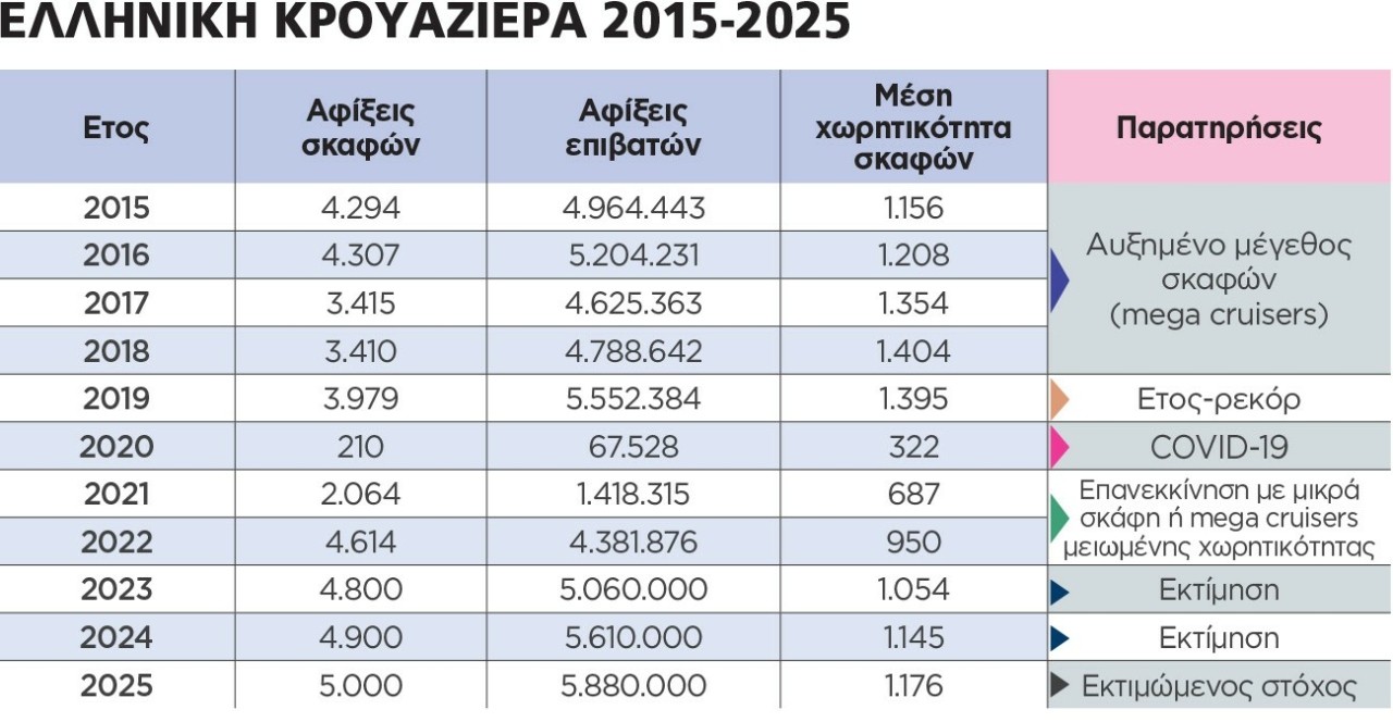 Είναι γεγονός ότι μετά το καταστροφικό έτος 2020 και την επανεκκίνηση της κρουαζιέρας το 2021, ο κλάδος αναπτύσσεται δυναμικά χρόνο με τον χρόνο και σύντομα θα φθάσουμε στα επίπεδα της χρονιάς-ρεκόρ, του 2019, όπως εκτιμούν οι ειδικοί αναλυτές.