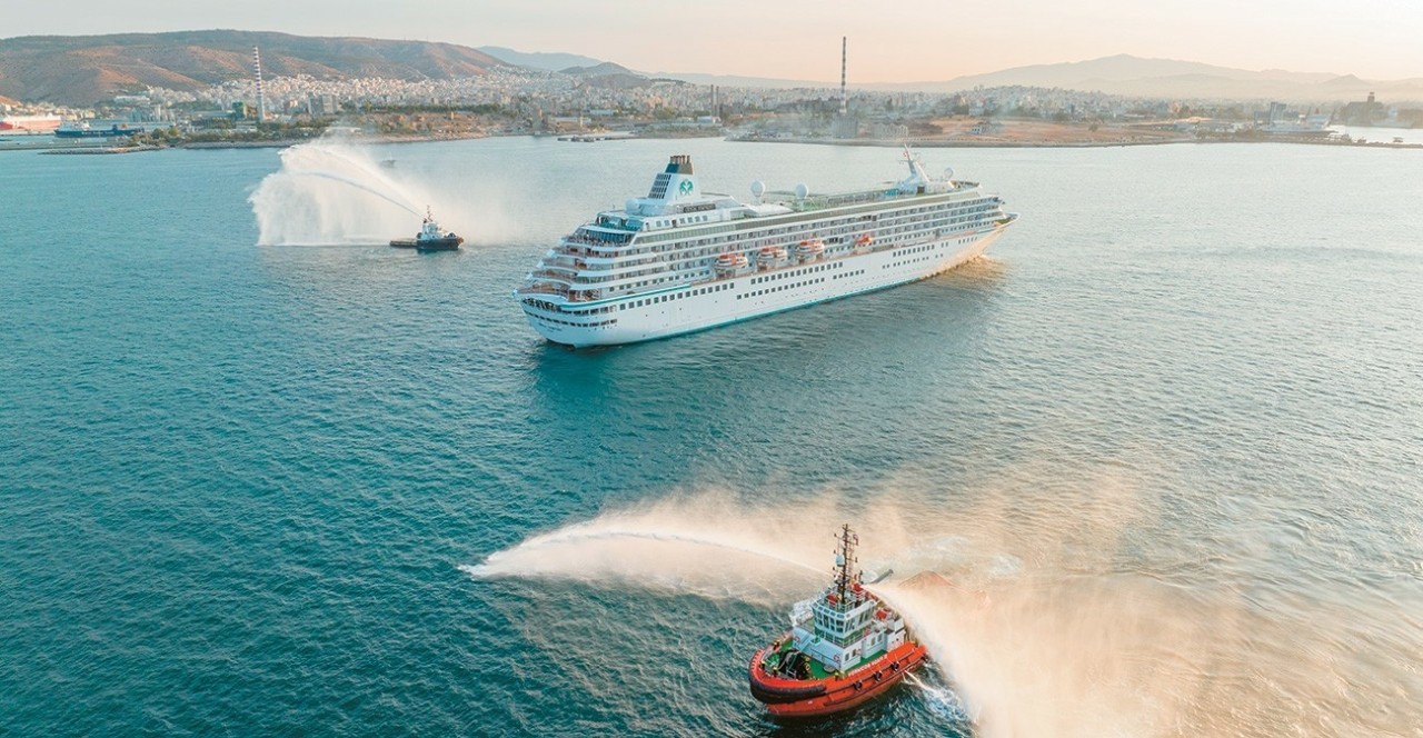 * Στη κεντρική φωτό, το παραδοσιακό καλωσόρισμα του κρουαζιερόπλοιου στο λιμάνι του Πειραιά