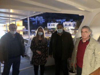 Το υποδέχτηκαν ο Δήμαρχος Αμοργού Λευτέρης Καραΐσκος, η Αντιδήμαρχος Τουριστικής, Πολιτιστικής Προβολής και Κοινωνικής Πρόνοιας Καλλιόπη Δεσποτίδη και ο Μιχάλης Θεολογίτης, μέλος του Δημοτικού Λιμενικού Ταμείου Αμοργού και πράκτορας του «Express Skopelits».