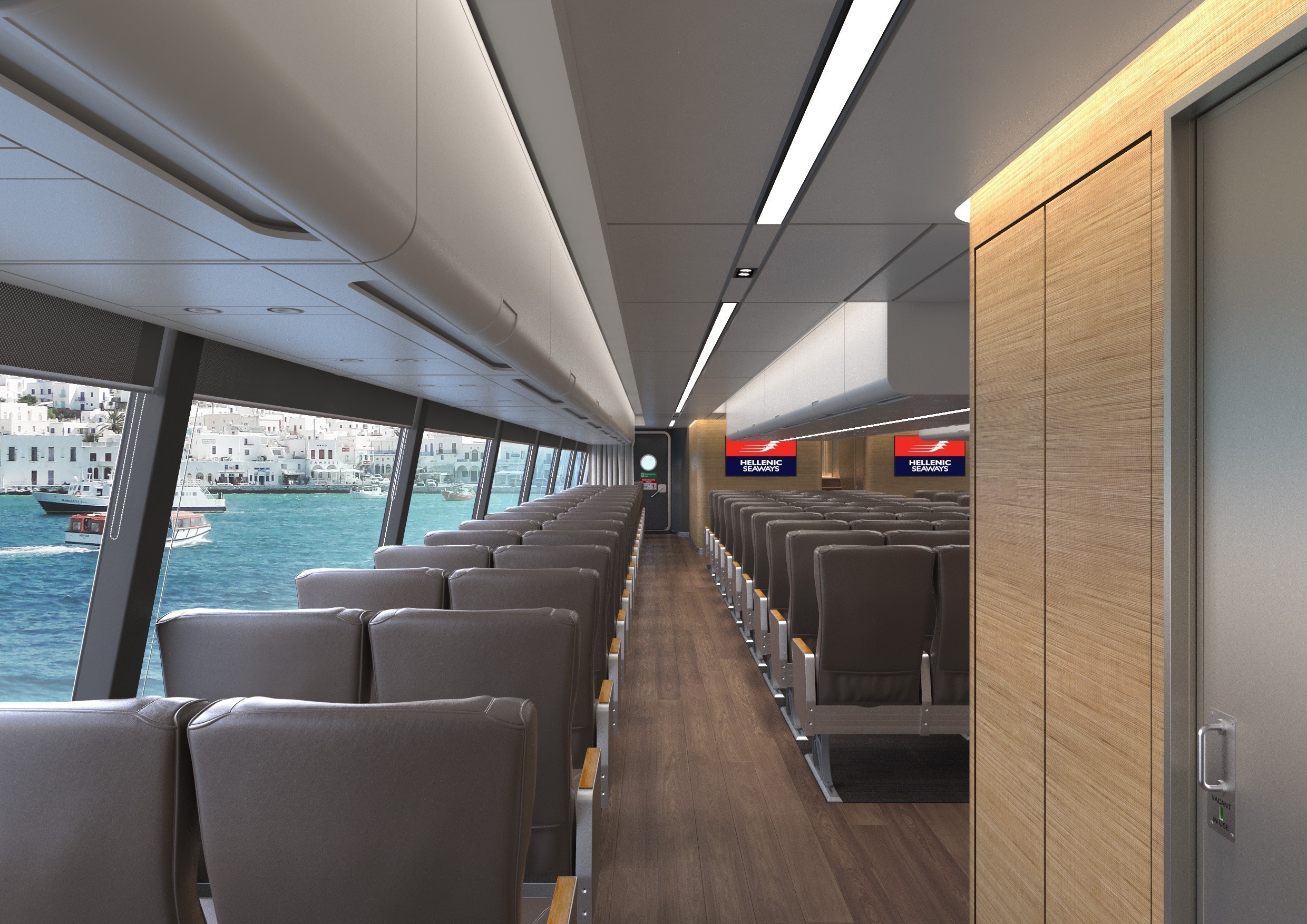 - ευρύχωρους χώρους ενδιαίτησης επιβατών με μεγάλα παράθυρα για πλήρη θέα και άπλετο φυσικό φωτισμό,