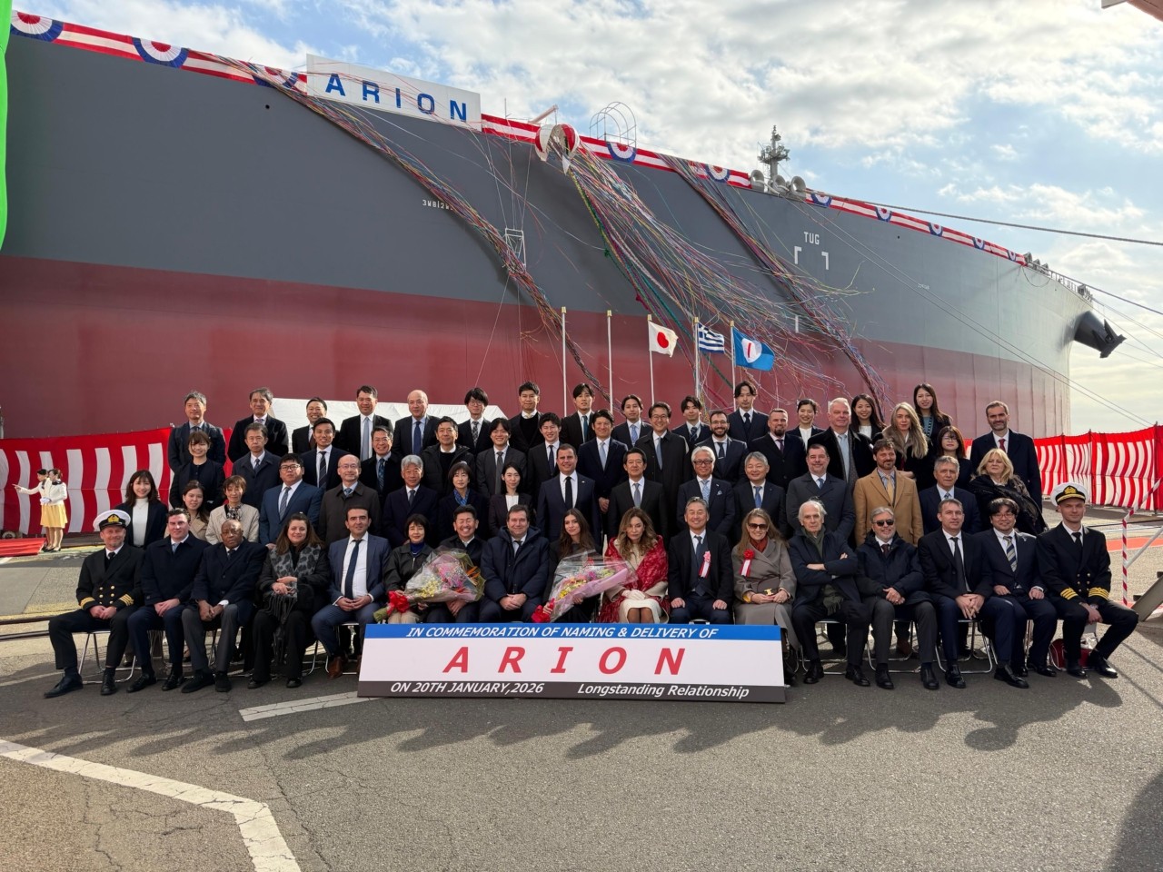 Η τελετή ονοματοδοσίας του “ARION” είχε χαρακτήρα αποχαιρετισμού. Παρέστησαν πρόεδροι άλλων ιαπωνικών ναυπηγείων μετά από πρόσκληση του Έλληνα εφοπλιστή, τιμώντας το τέλος μιας εποχής για την εμπορική ναυπήγηση της Sumitomo και αναγνωρίζοντας τη συμβολή της στον παγκόσμιο στόλο. Παρών και ο πλοιοκτήτης Δημήτρης Σαρακάκης ο οποίος για λογαριασμό της IONIC είχε κατασκευάσει στο ναυπηγείο αυτό δύο πλοία.