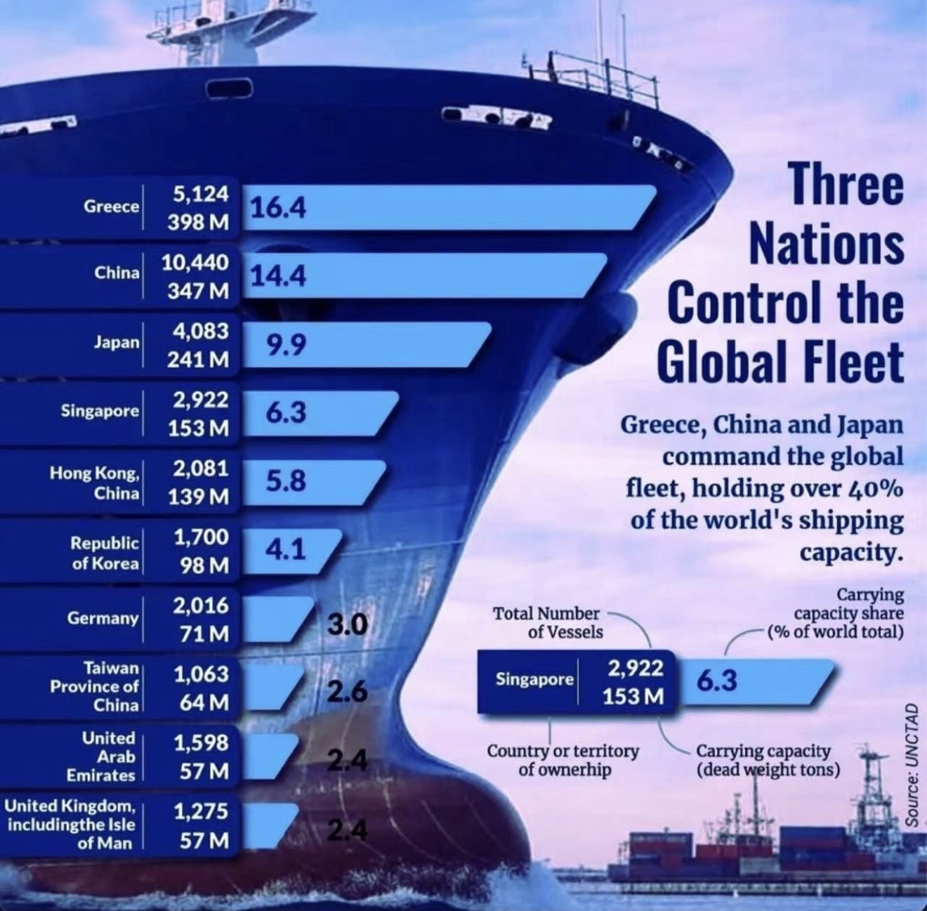 Οι τρεις αυτές χώρες ελέγχουν συνολικά πάνω από το 40% της παγκόσμιας μεταφορικής ικανότητας, γεγονός που τους δίνει σημαντική οικονομική και γεωπολιτική δύναμη.